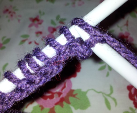 When you first start knitting, I think it’s best to keep to a small number of stitches. As you will see in my pic below I’ve gone for 10. Okay, are you ready for your first full row of knitting?