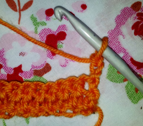 10. At the end of the row, turn your work and make 3 chain stitches for your turning chain.
