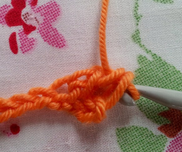 9. To finish the row, repeat the steps above to make one stitch in each chain.
