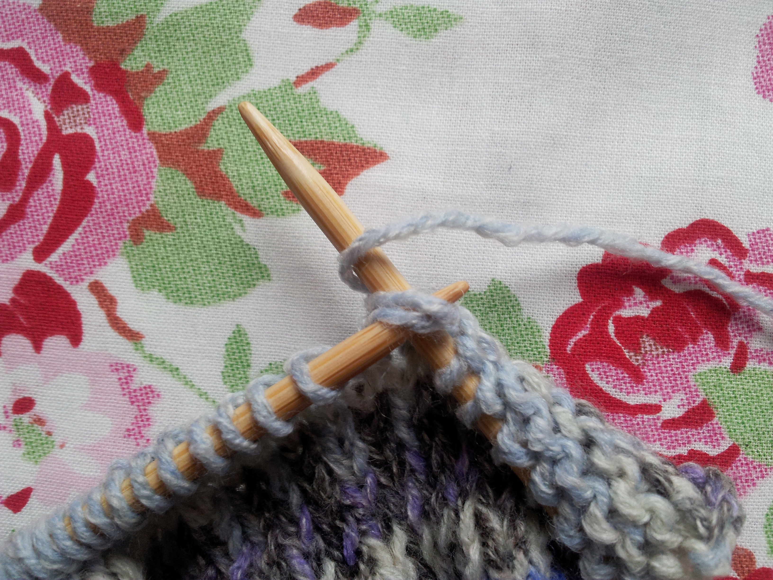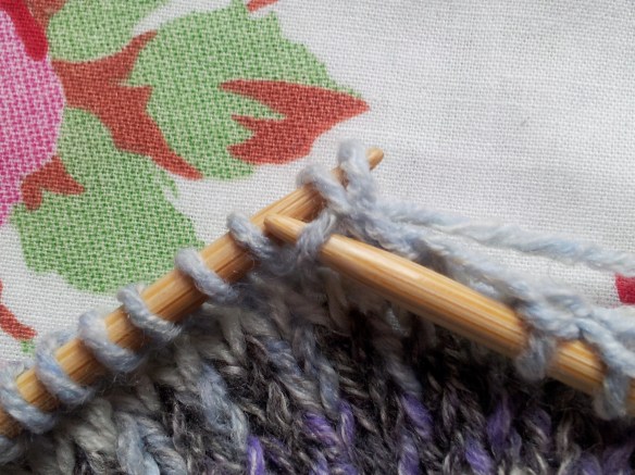 4. Use the tip of your right needle to push / drop your old stitches off your left needle.
