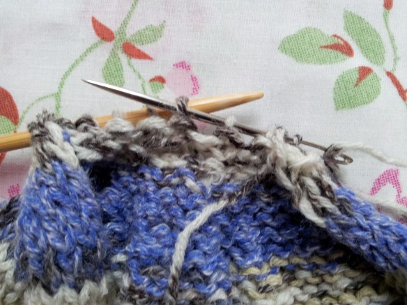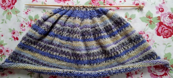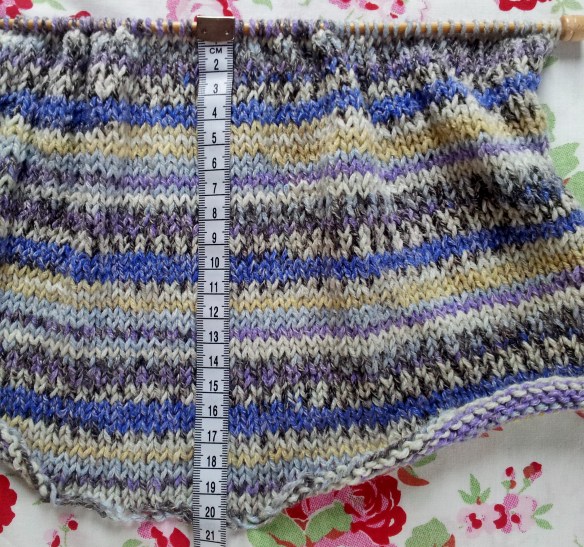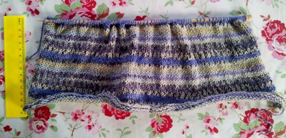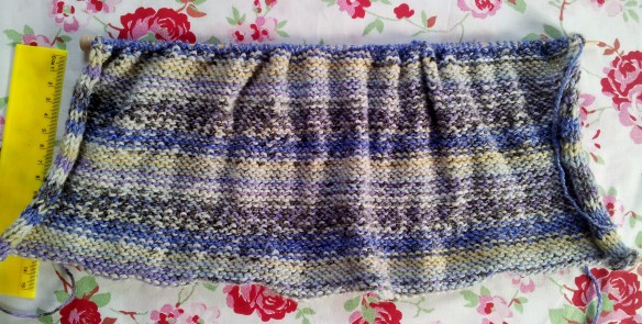 Your knitting should grow pretty fast  – after 2 and a half hours mine looked like this: