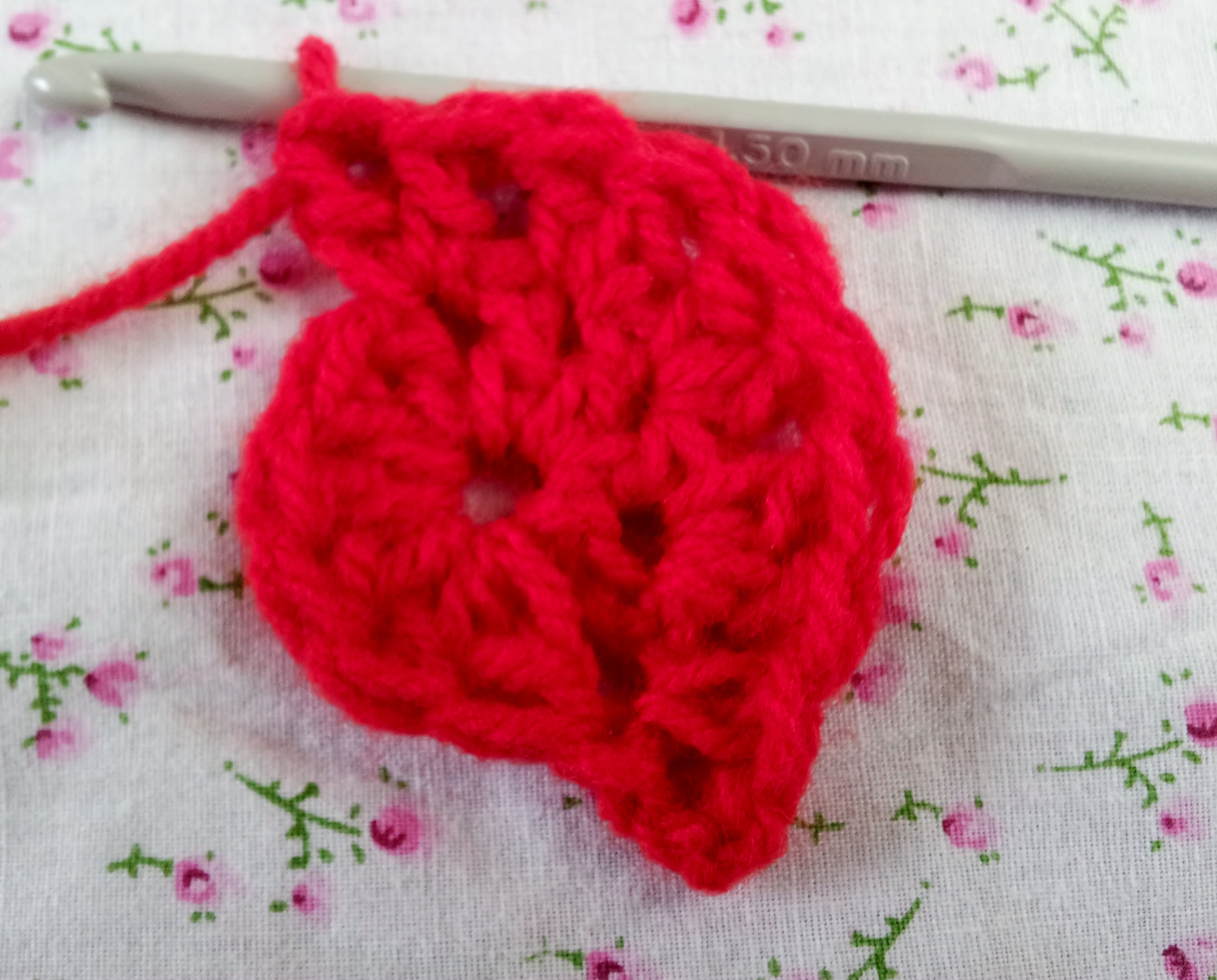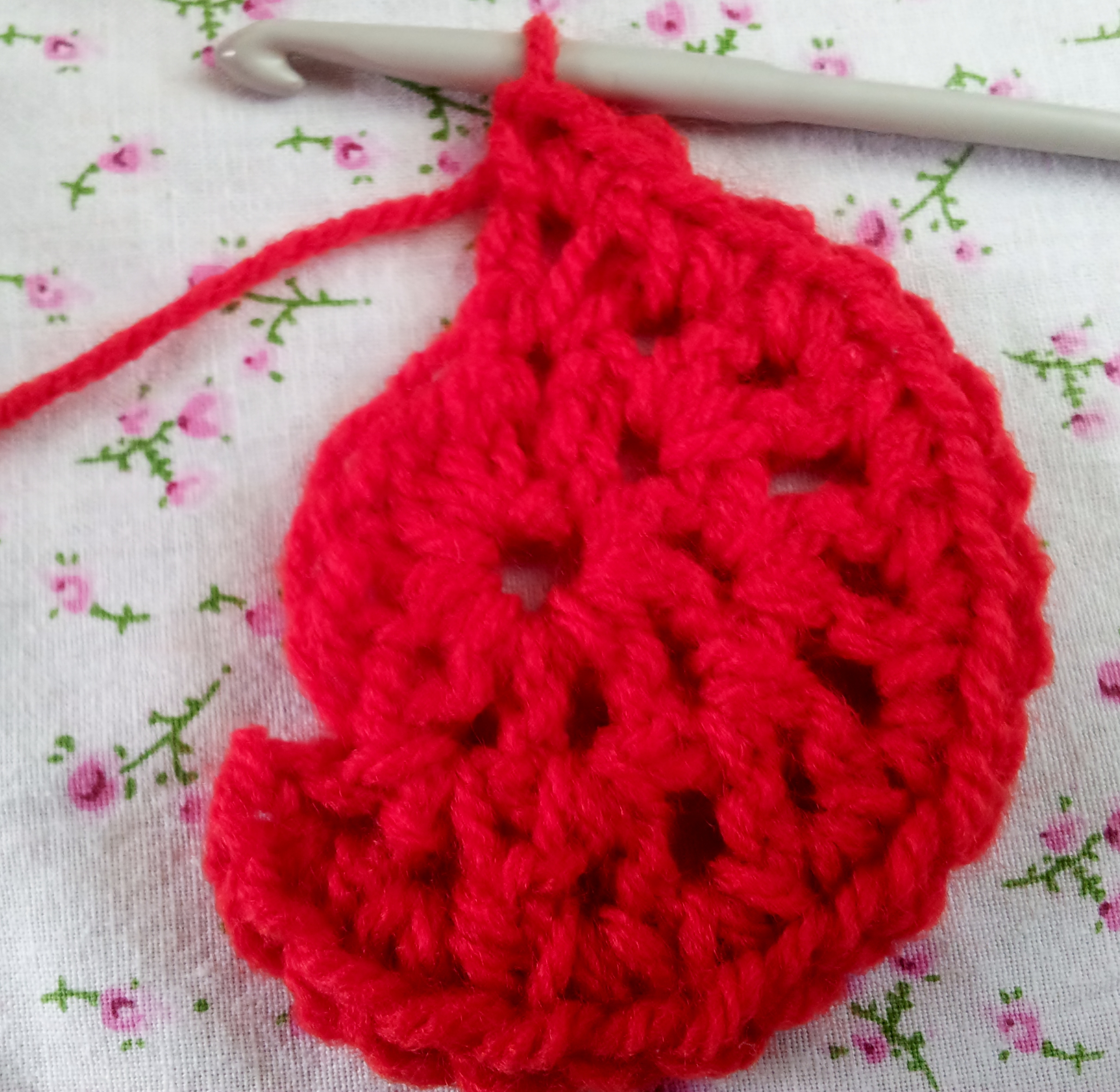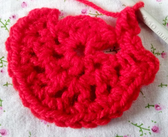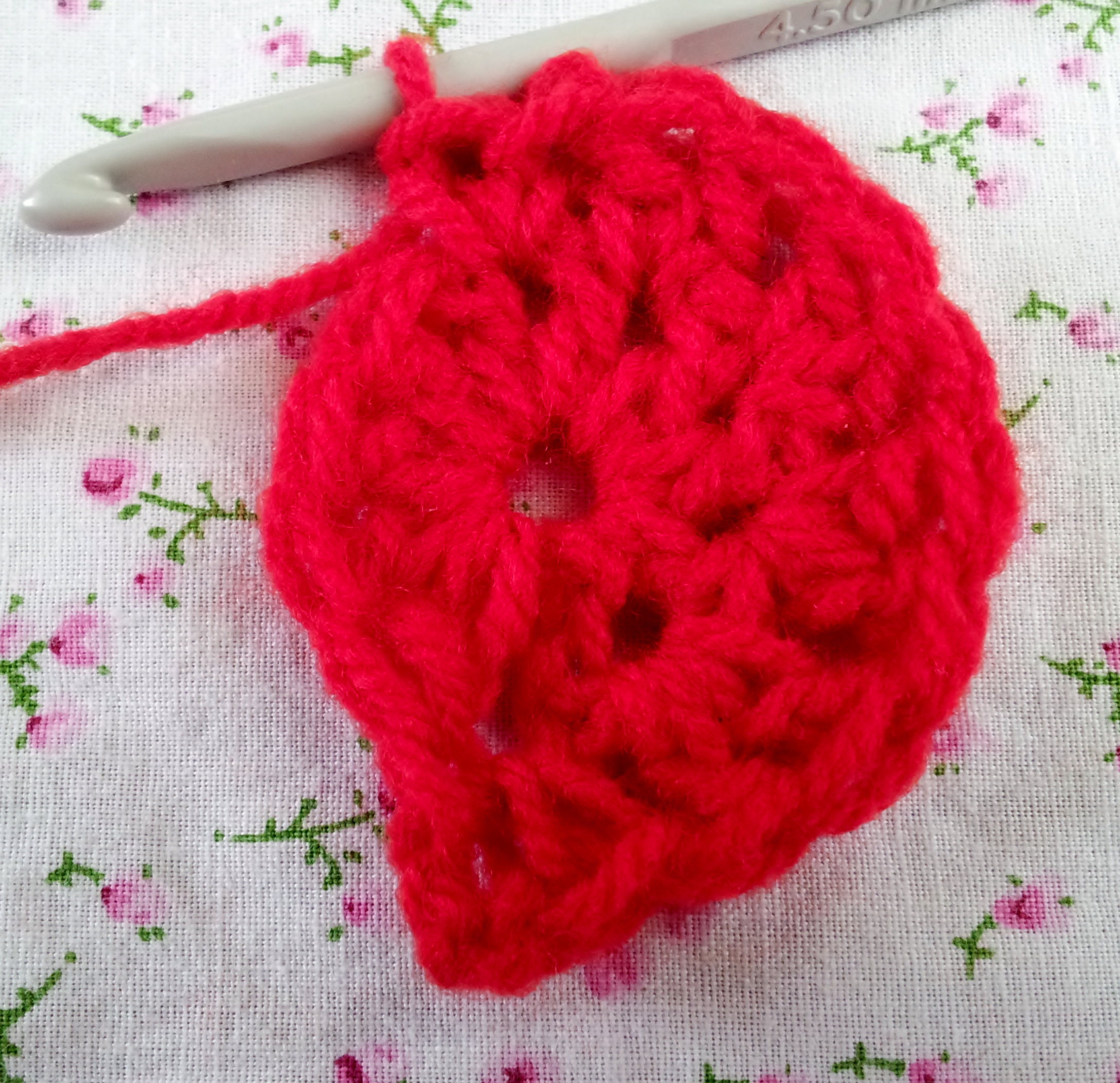 11. Work 2 UK double (US single) stitches into each stitch of the top edge of your petal. When you reach the end, slip stitch back down the side of your petal to the centre. Fasten off your work and sew in ends.
