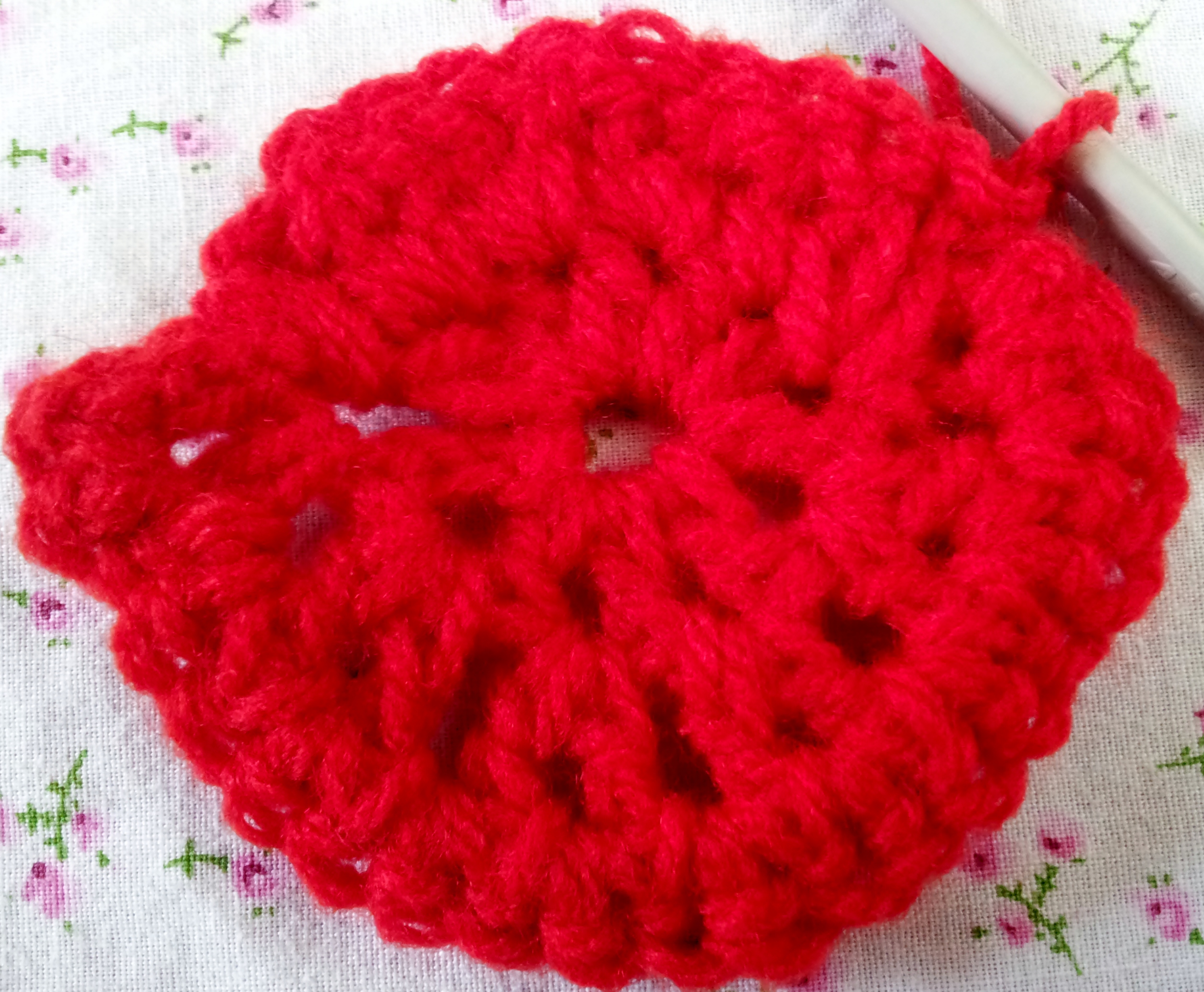 I’m using some red double-knit yarn and a 4.5mm crochet hook. If you need a quick stitch reminder click here.