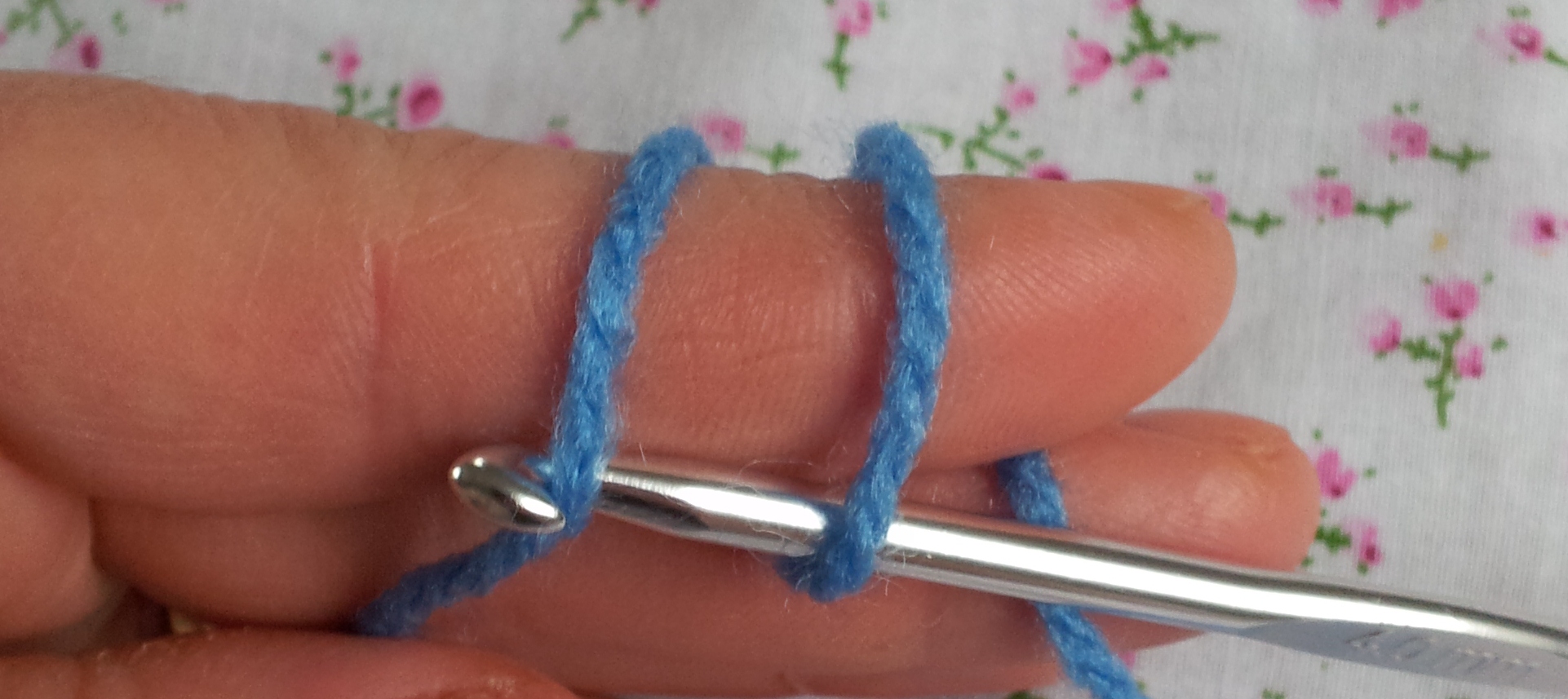 1. Firstly loop the yarn twice around your finger so that the ball of yarn is to the palm of your hand and yarn tail closest to your finger tip.