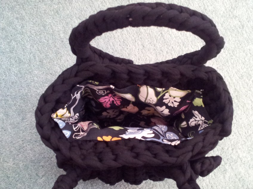 inside finised bag Published December 24, 2012 at 2176 × 1629 in Will you get hooked on Zpagetti? Crochet Zpagetti Yarn Bag- tried and tested