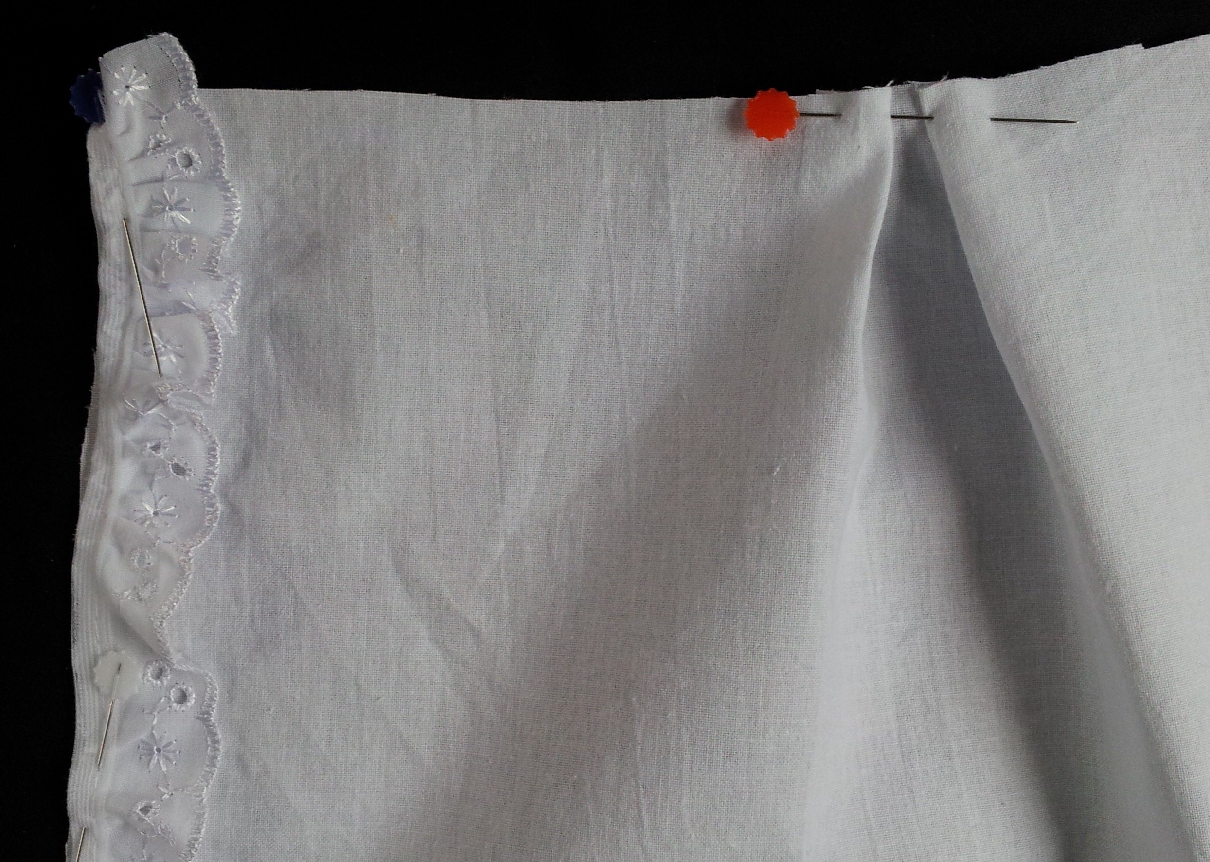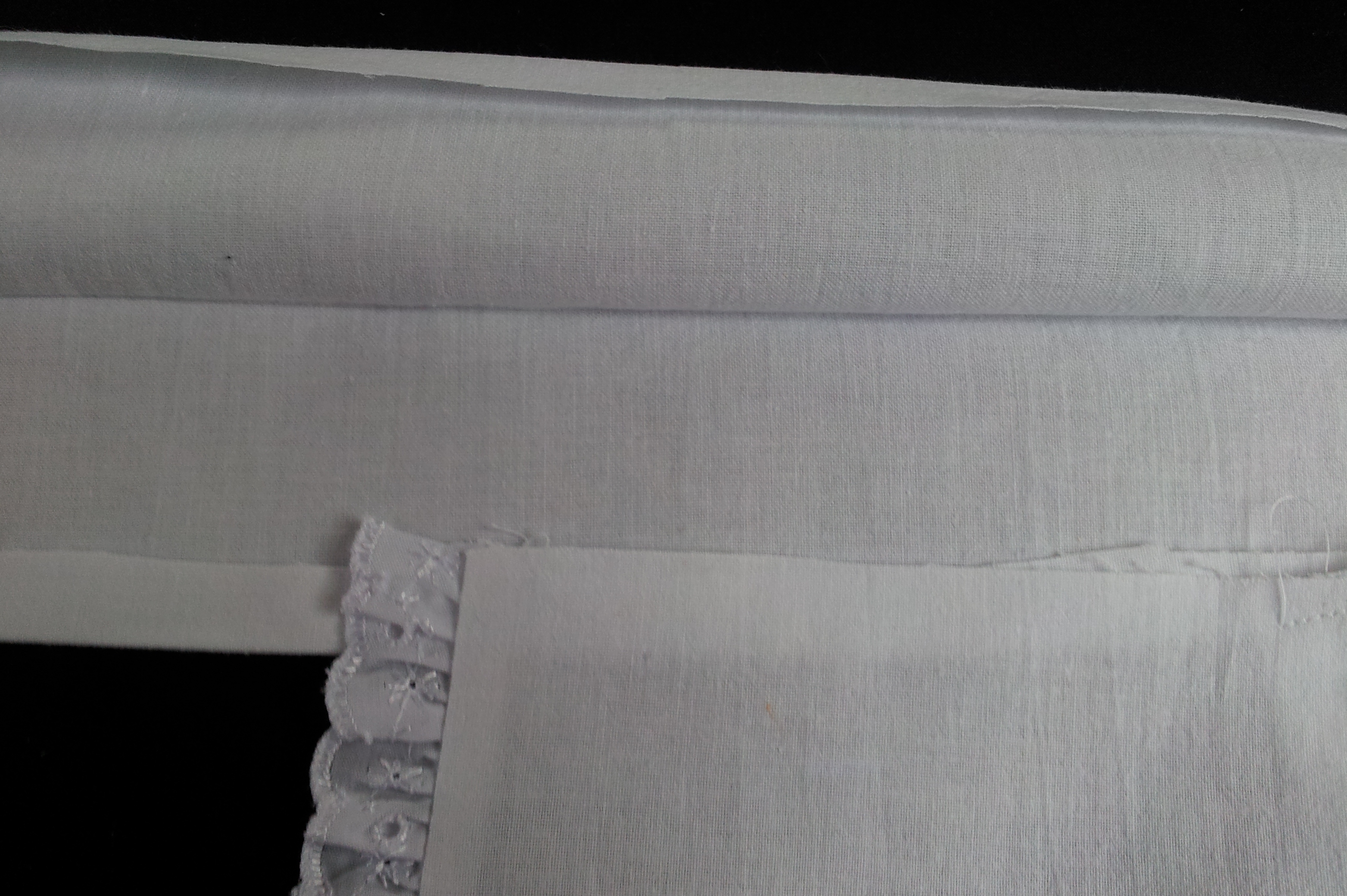 Press the lace flat so it lays over the edge of your apron.