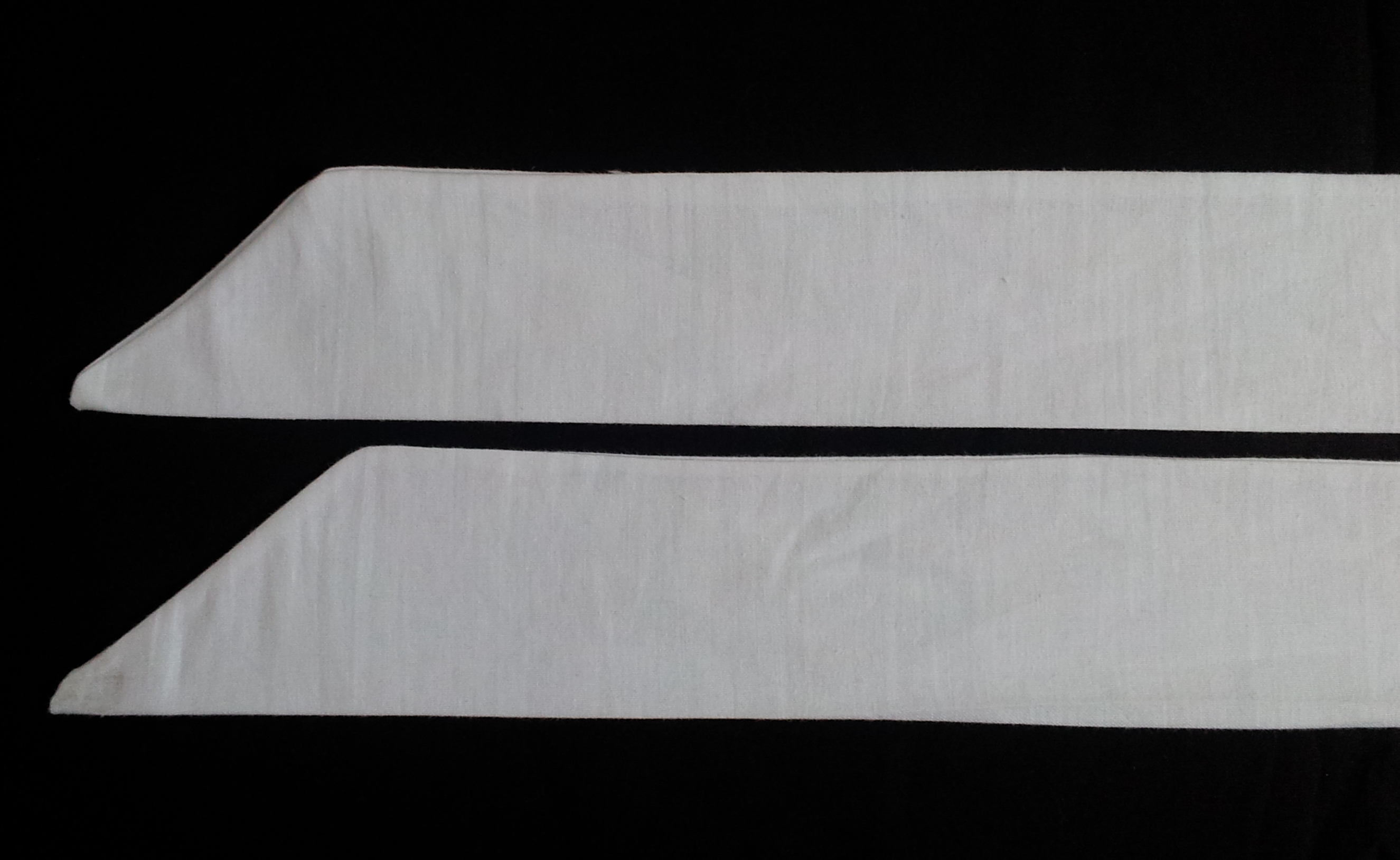 7. Trim the other end of the strip into a diagonal, turn the raw ends in and stitch the end closed. Your bow ribbon should look something like this: