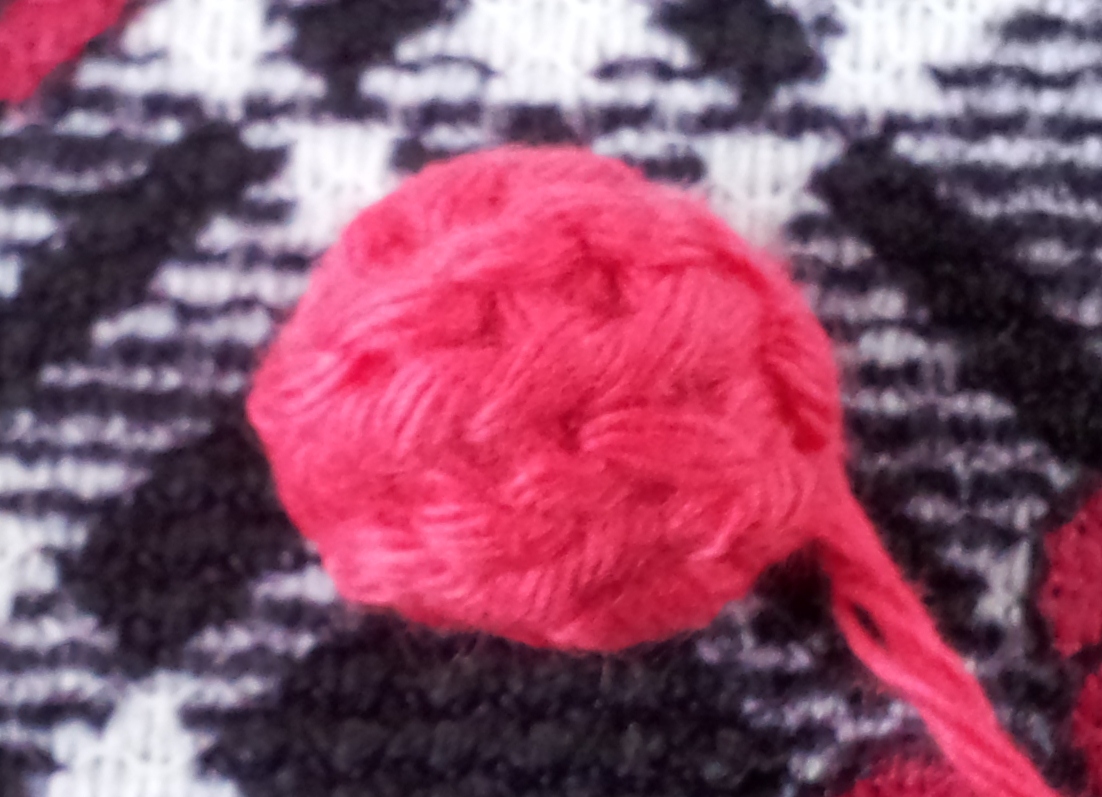 Using one of your yarn tails, make a running stitch around the edges of your cherry rectangle and draw together to form a ball. Secure in place with a few stitches.