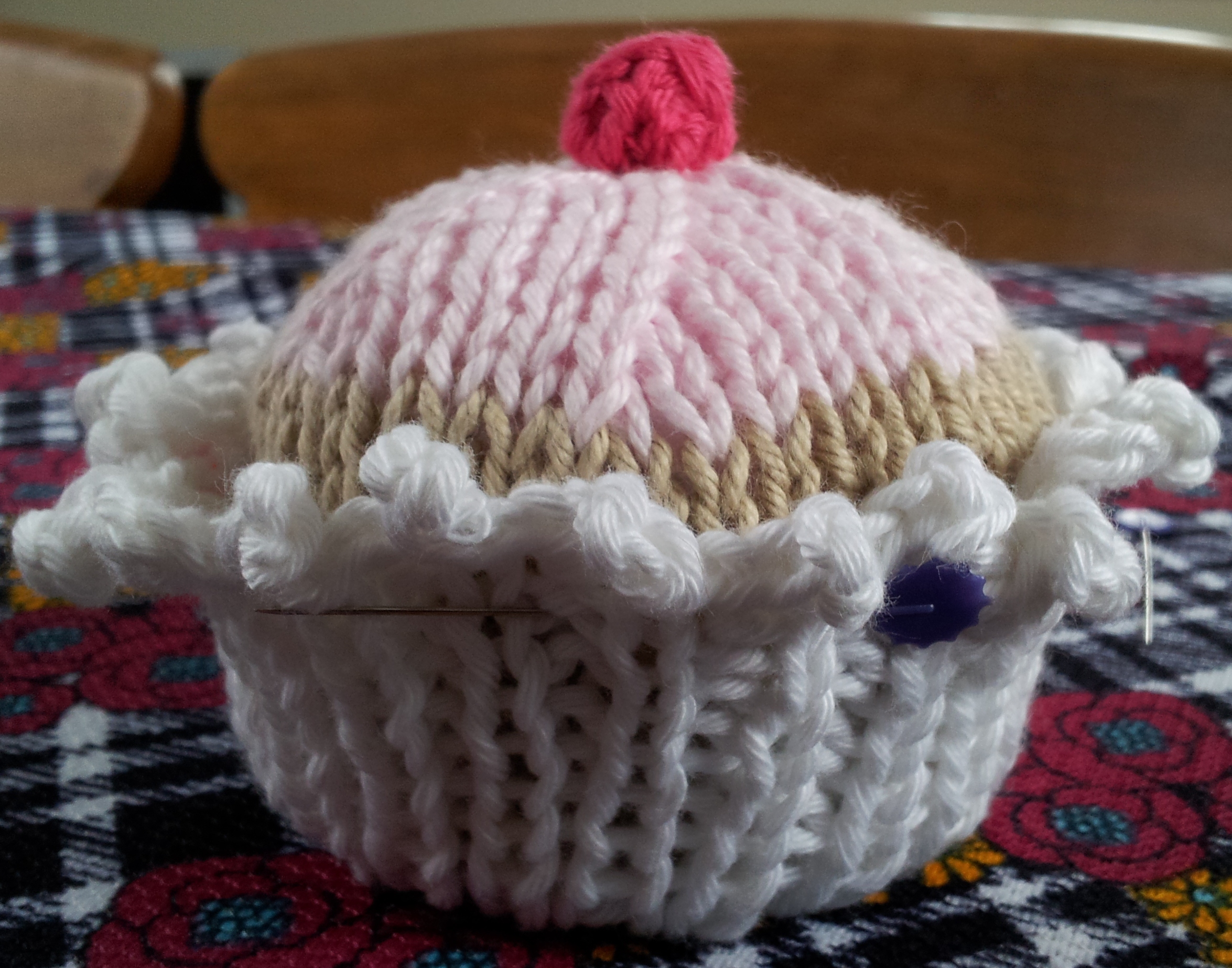 What will your use your cupcake for? Mine is going to be my new pincushion! The pattern can easily be adapted to give different looks – ie, work the icing in garter stitch (knit all rows), cast off the case side ‘normally’ for a flat case edge, or pop a knitted or crochet flower on top to decorate! What ever you make – have fun! It would be great to hear what you do with yours.