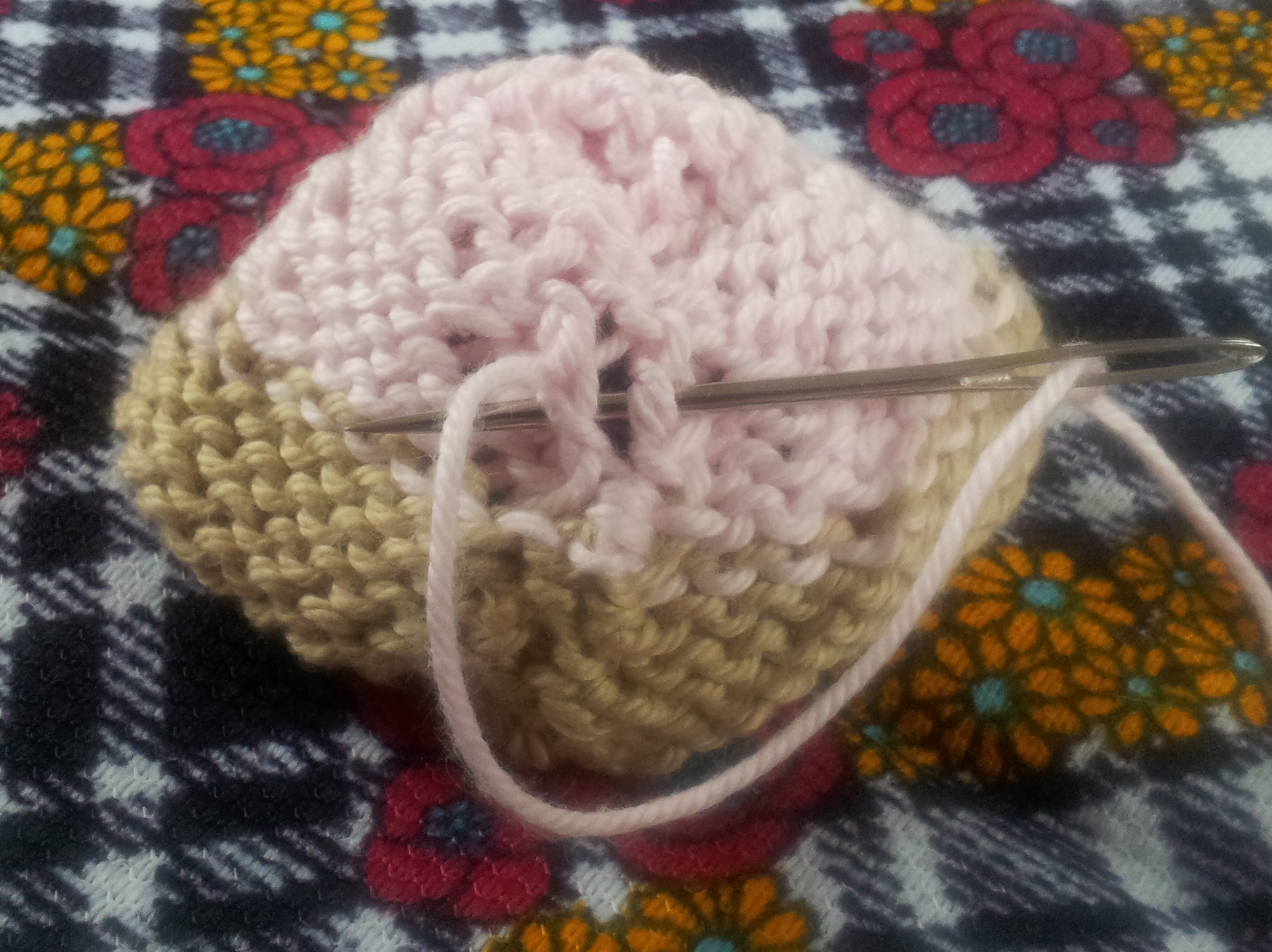 Pull the thread to gather your stitches together and then sew up the side seams (its best if you do this on the wrong side) to form a dome. Here’s mine from the wrong side.