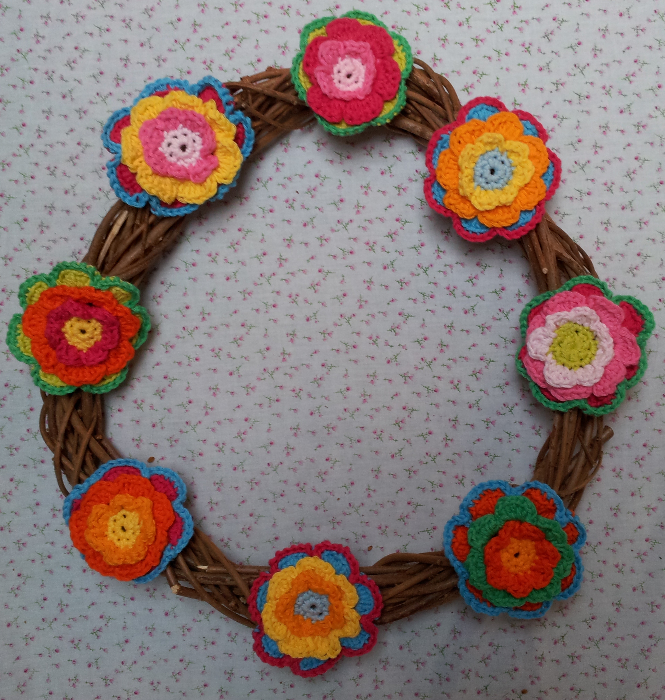With 8 triple layer flowers crocheted using Rico’s Creative Cotton on a 4.5mm hook.