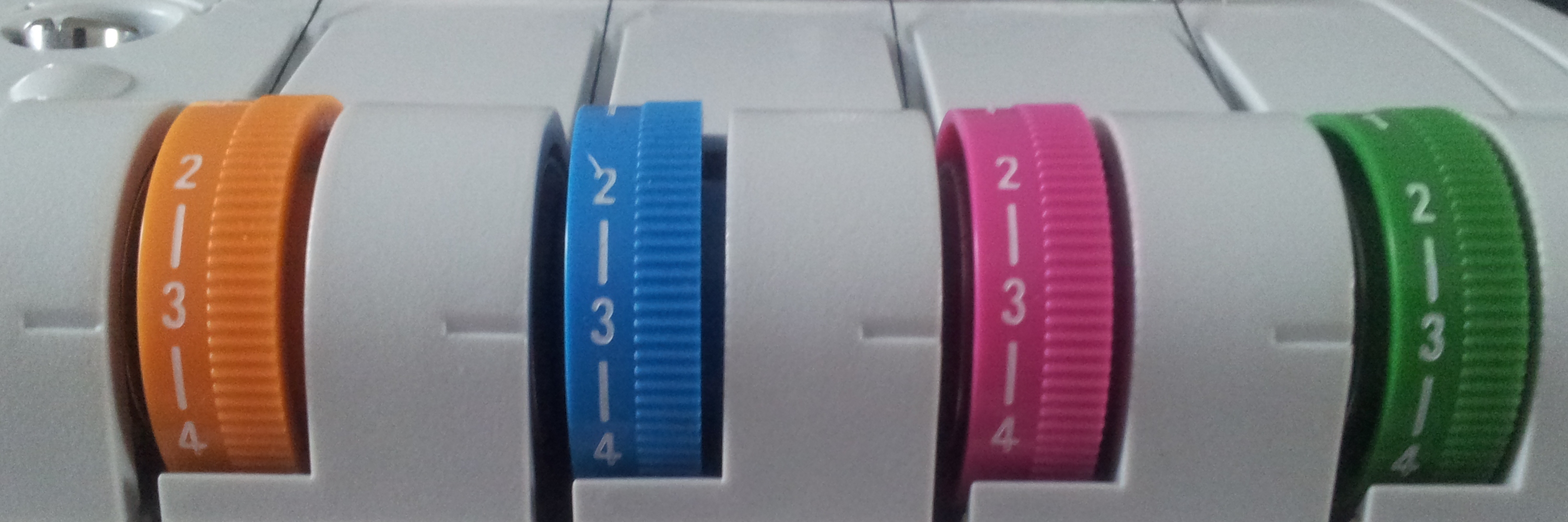 Tension Dials: These are normally at the top of your machine and there is a separate dial for each needle and your upper and lower looper.