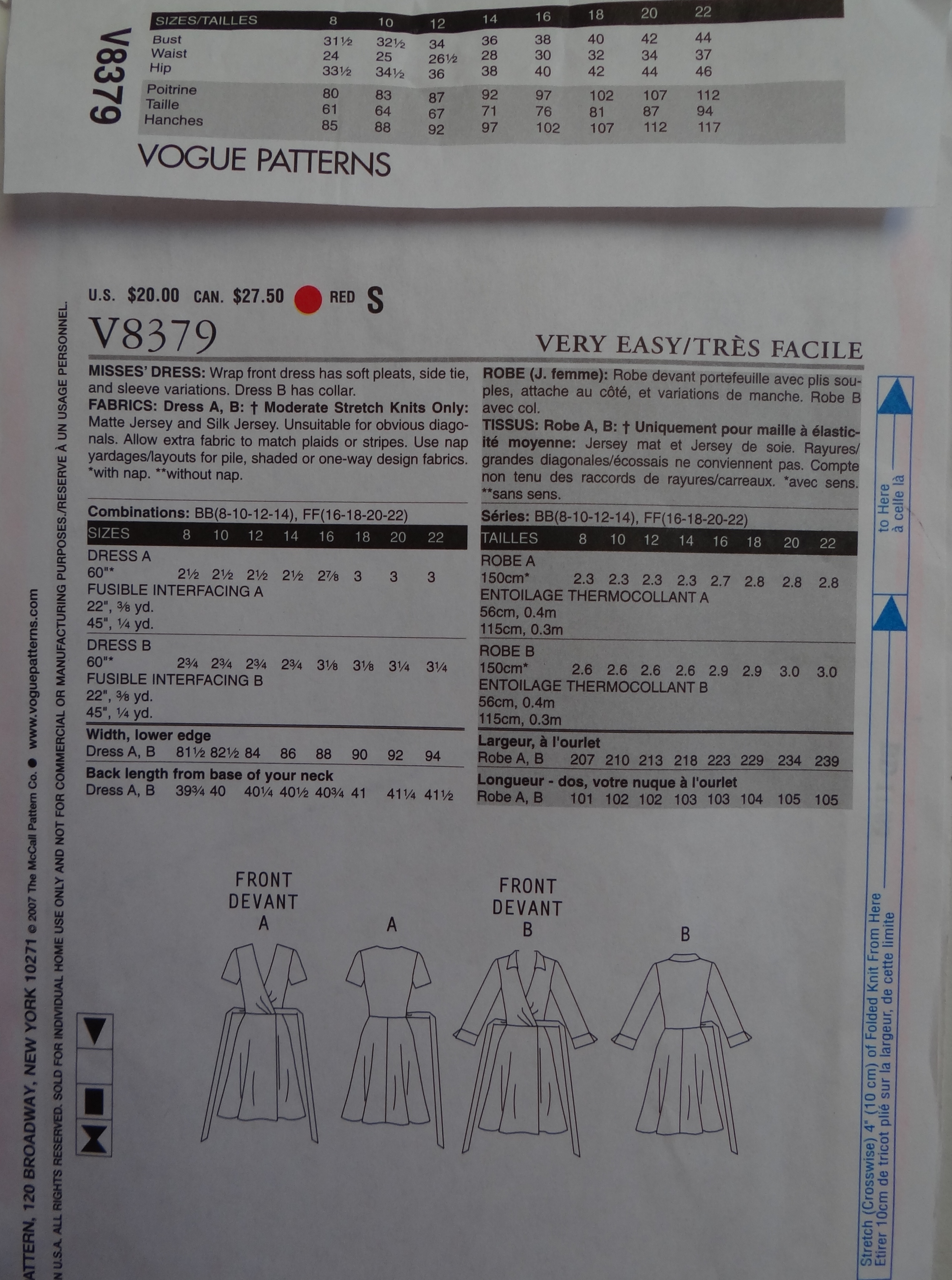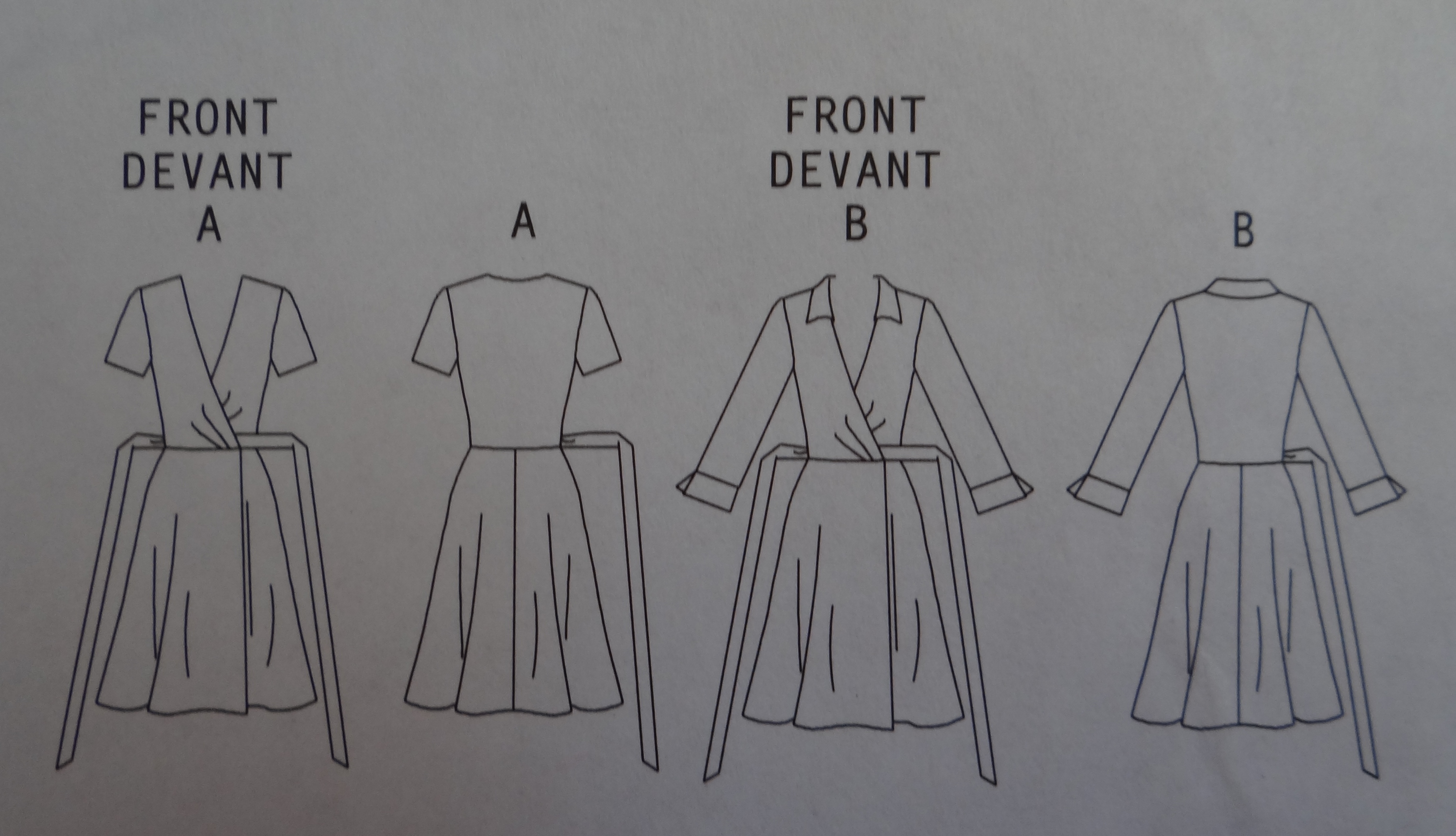 Take a good look at the back of your pattern envelope. For consistency, I’m showing you a close up of the wrap dresses envelope. As will all patterns featured, I am using them to highlight certain features, not because I am recommending them.