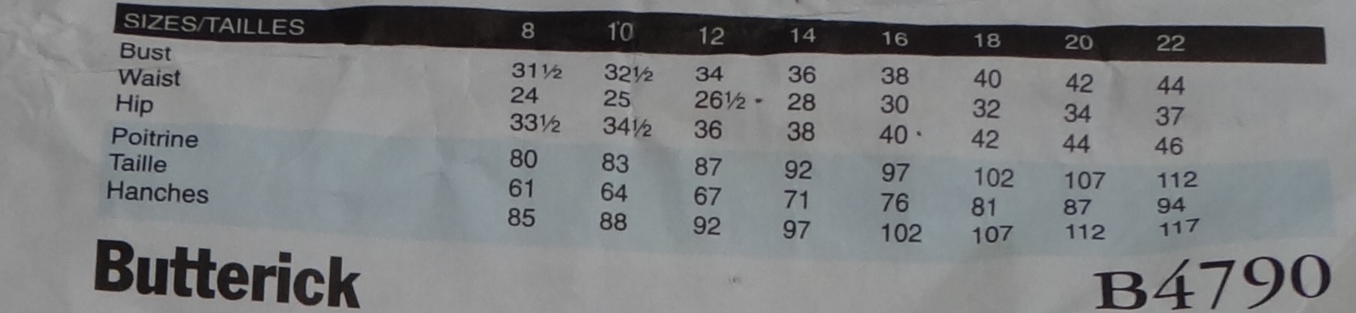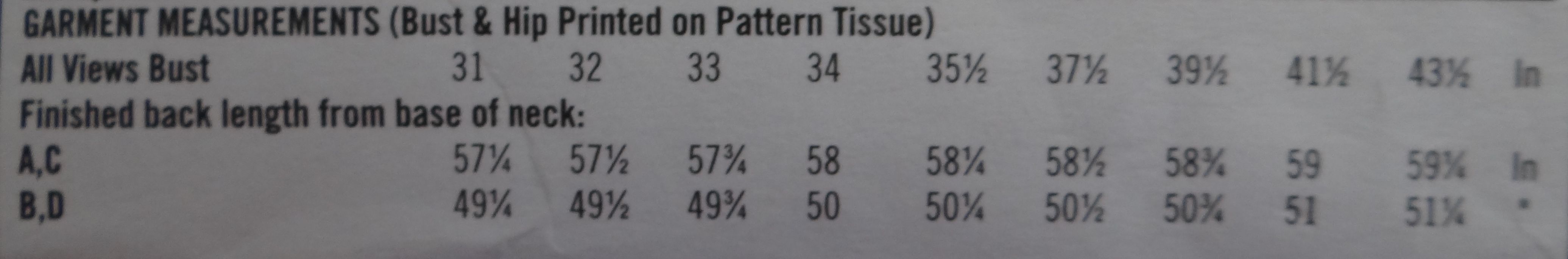 Most patterns come in a range of sizes and when it comes to choosing the pattern size you need make sure you are guided by the patterns measurements rather than your shop brought dress size. For example, I am normally a size 12, but need to use at least a size 14 pattern when it comes to making my own clothes to allow a 36 inch bust.