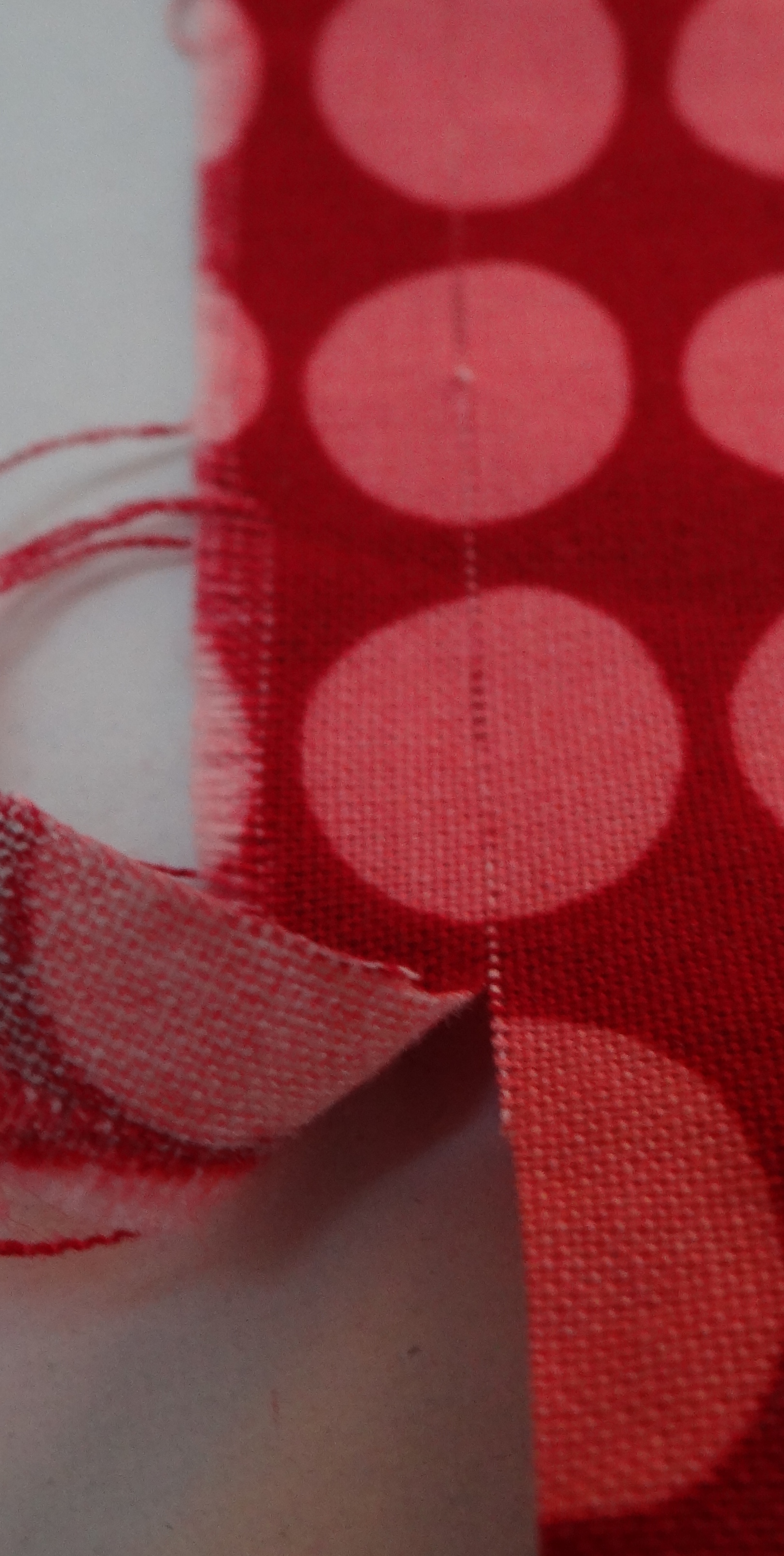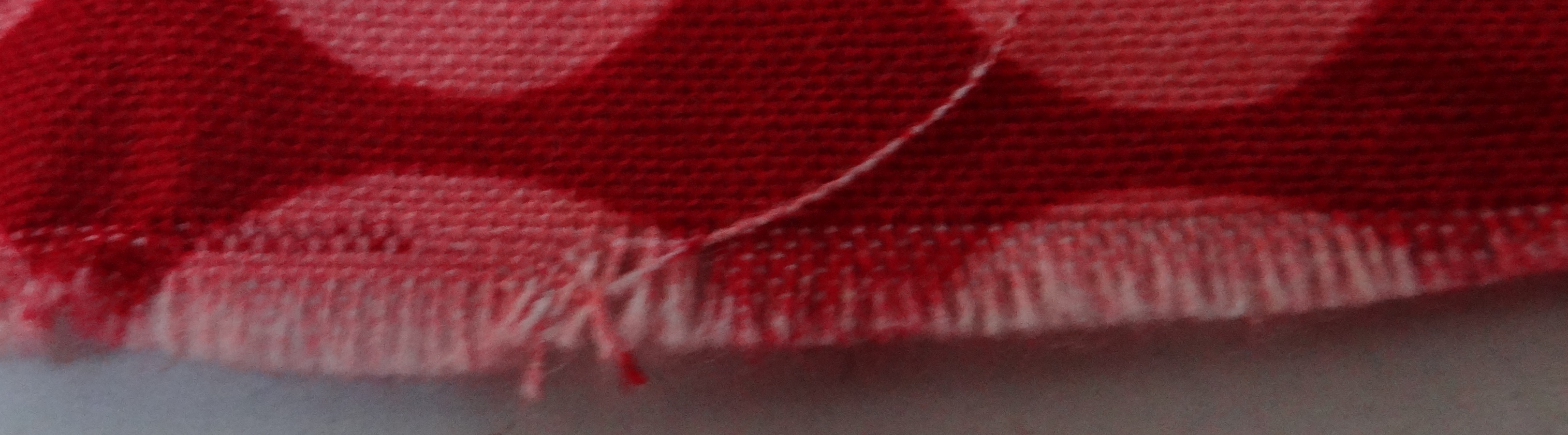 One of the easiest ways to get your fabric straight is to find a weft thread (close to the edge) that runs across the width of the fabric – a pin can help to pull out and isolate the thread. Pull the thread gently – your fabric should start to gather up. If your thread breaks, find the broken end and pull again.
