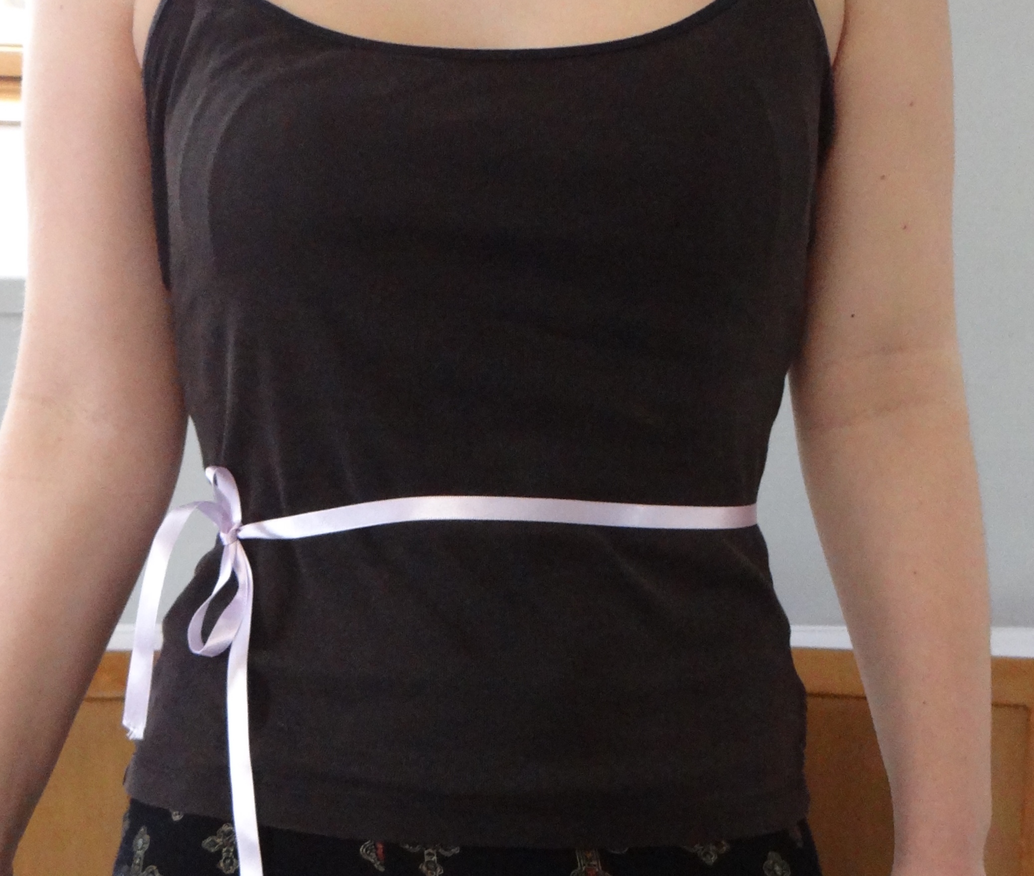 A top tip is to tie a piece of ribbon around the smallest part of the persons waist and use this as a reference point. It’s really all about measuring the person around the fullest of their body ie, bust or hips. The pattern I am using said to measure the person hips 9 inches below their waist which worked out about right.