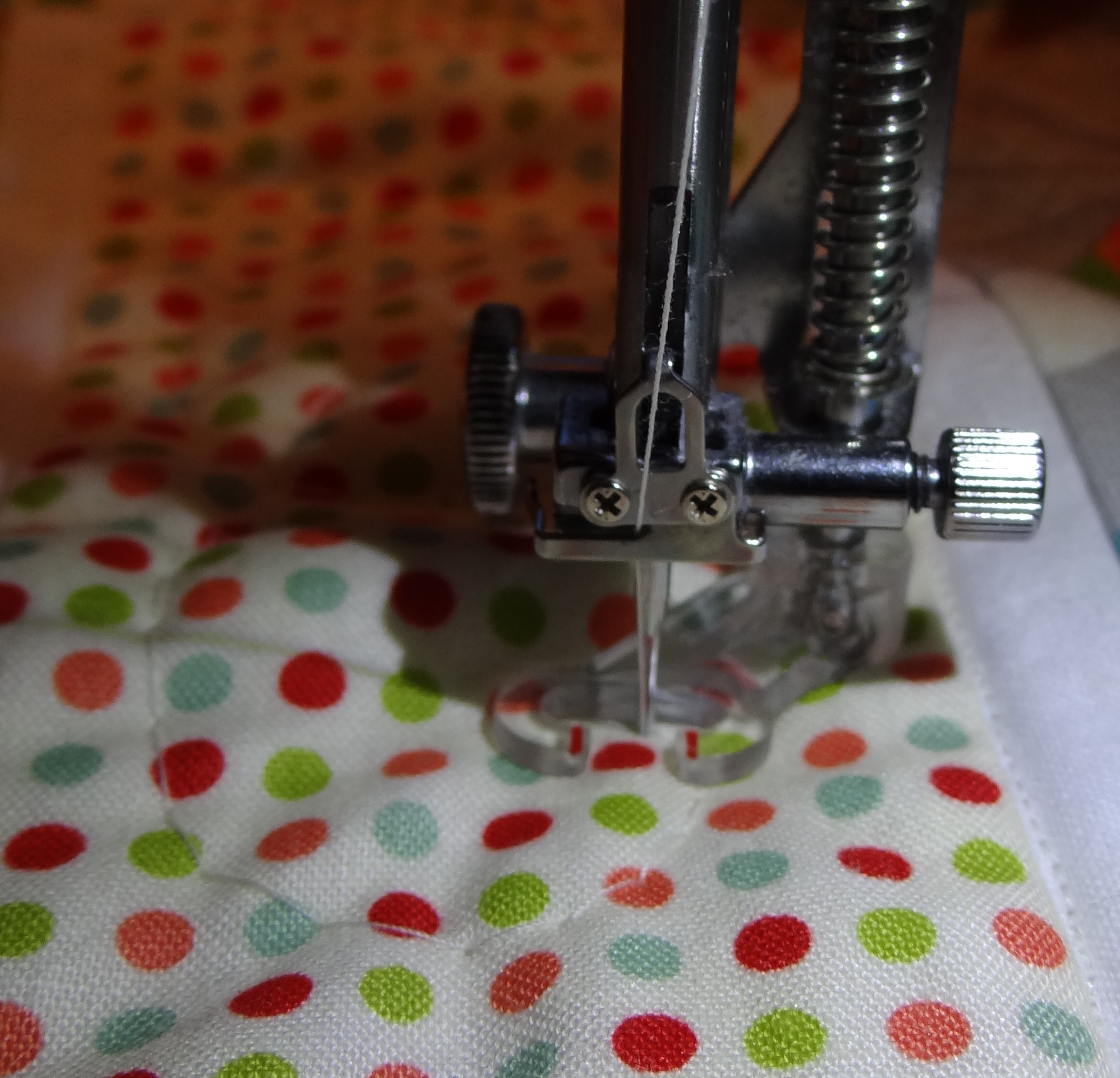 The quilting was completed on my sewing machine – by rolling the layers up tightly I somehow managed to squeeze it in! To keep the retro vibe alive an awesome vintage sheet was used for the backing.