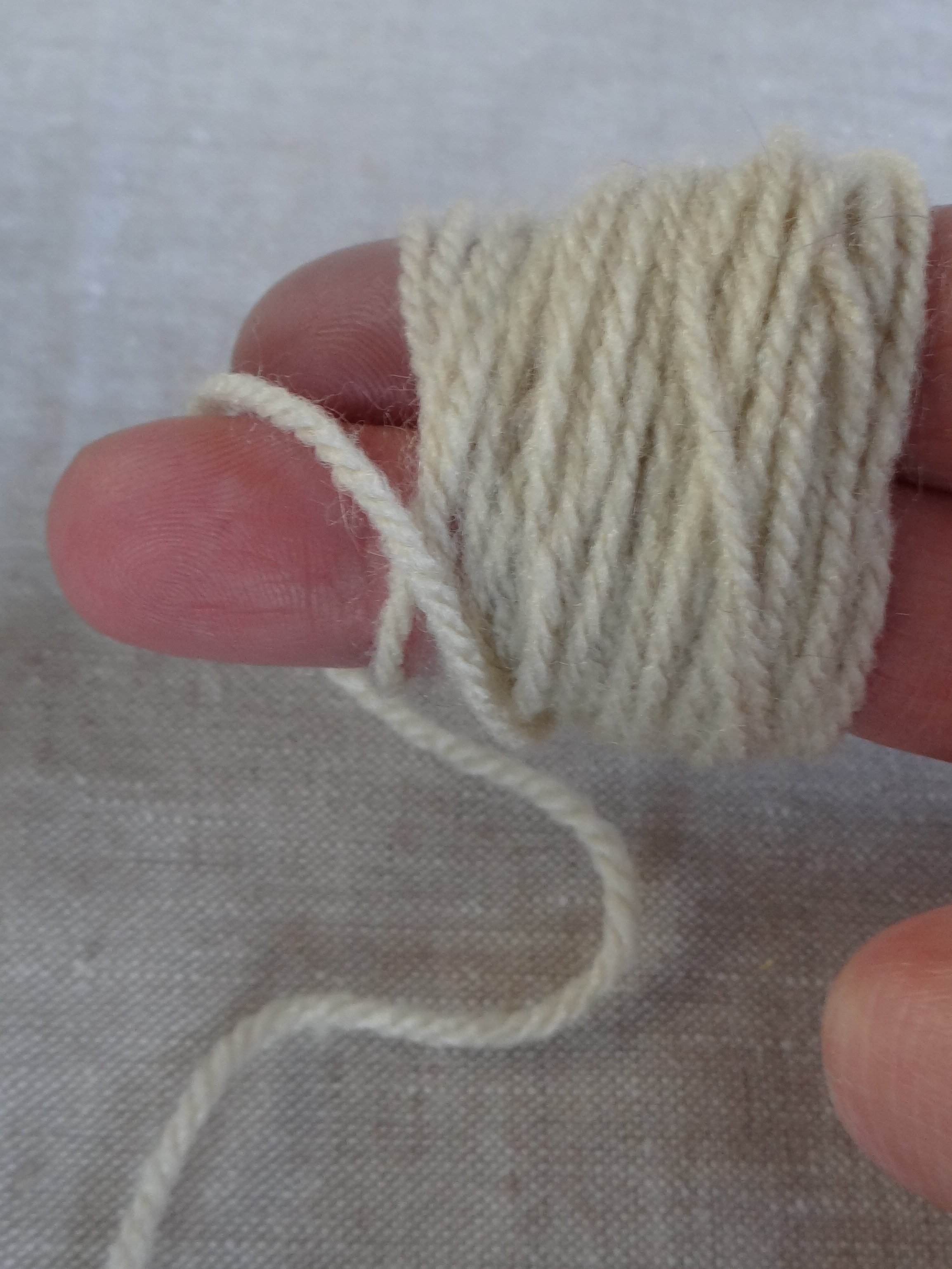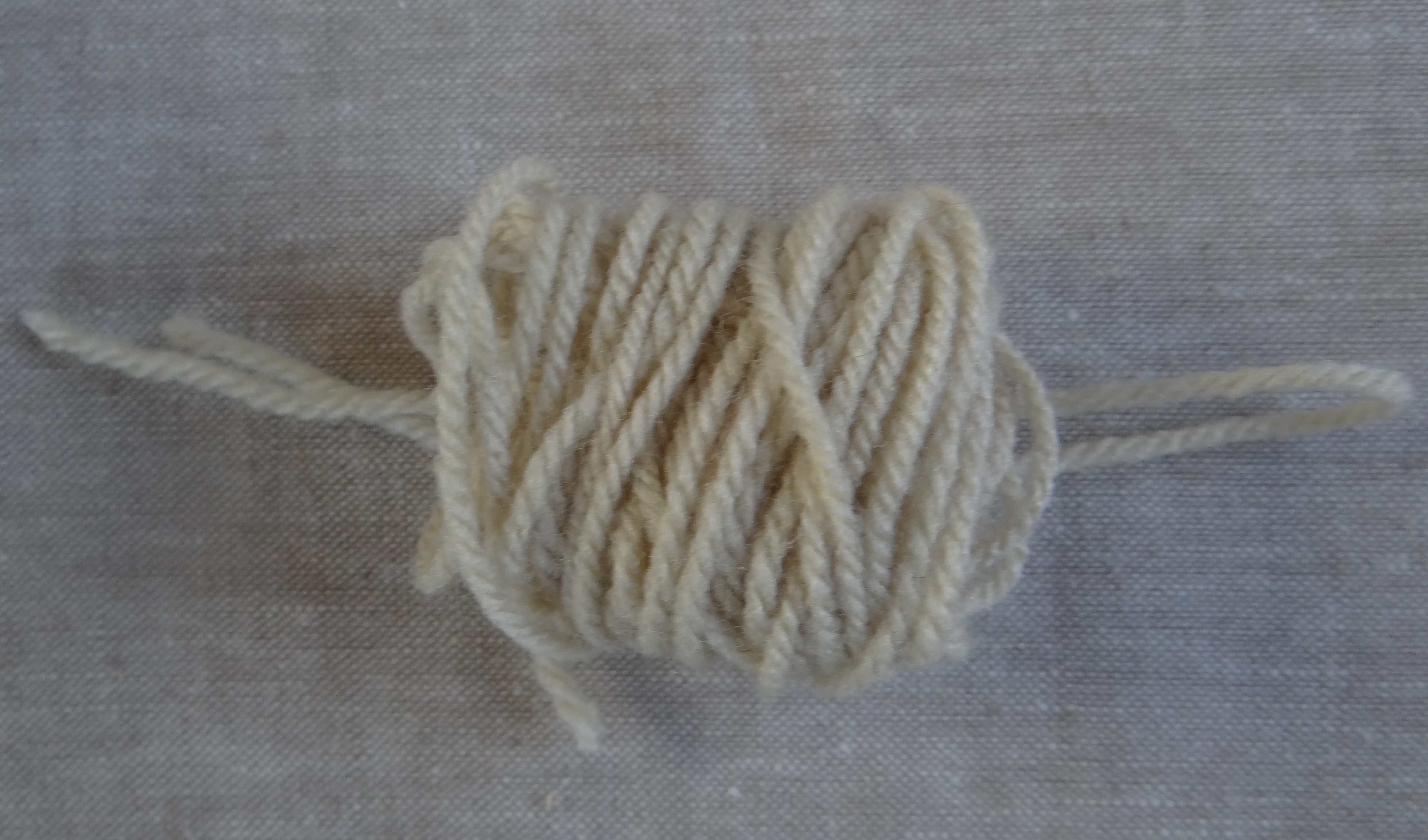 Next slide the wound yarn off your fingers and cut a piece to go around the middle.