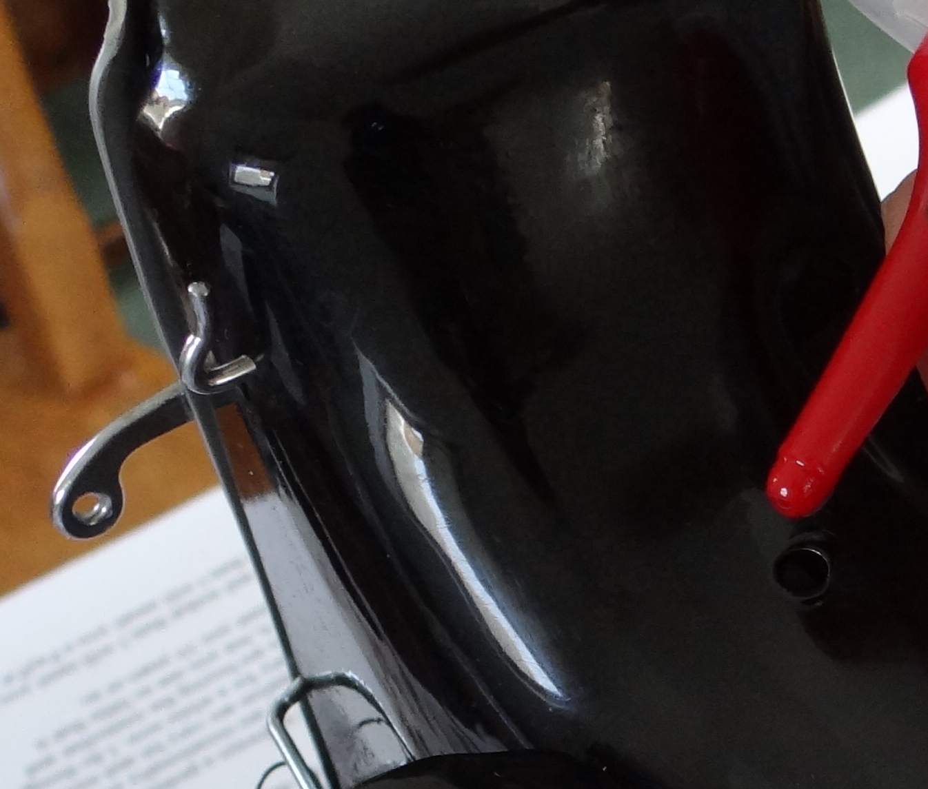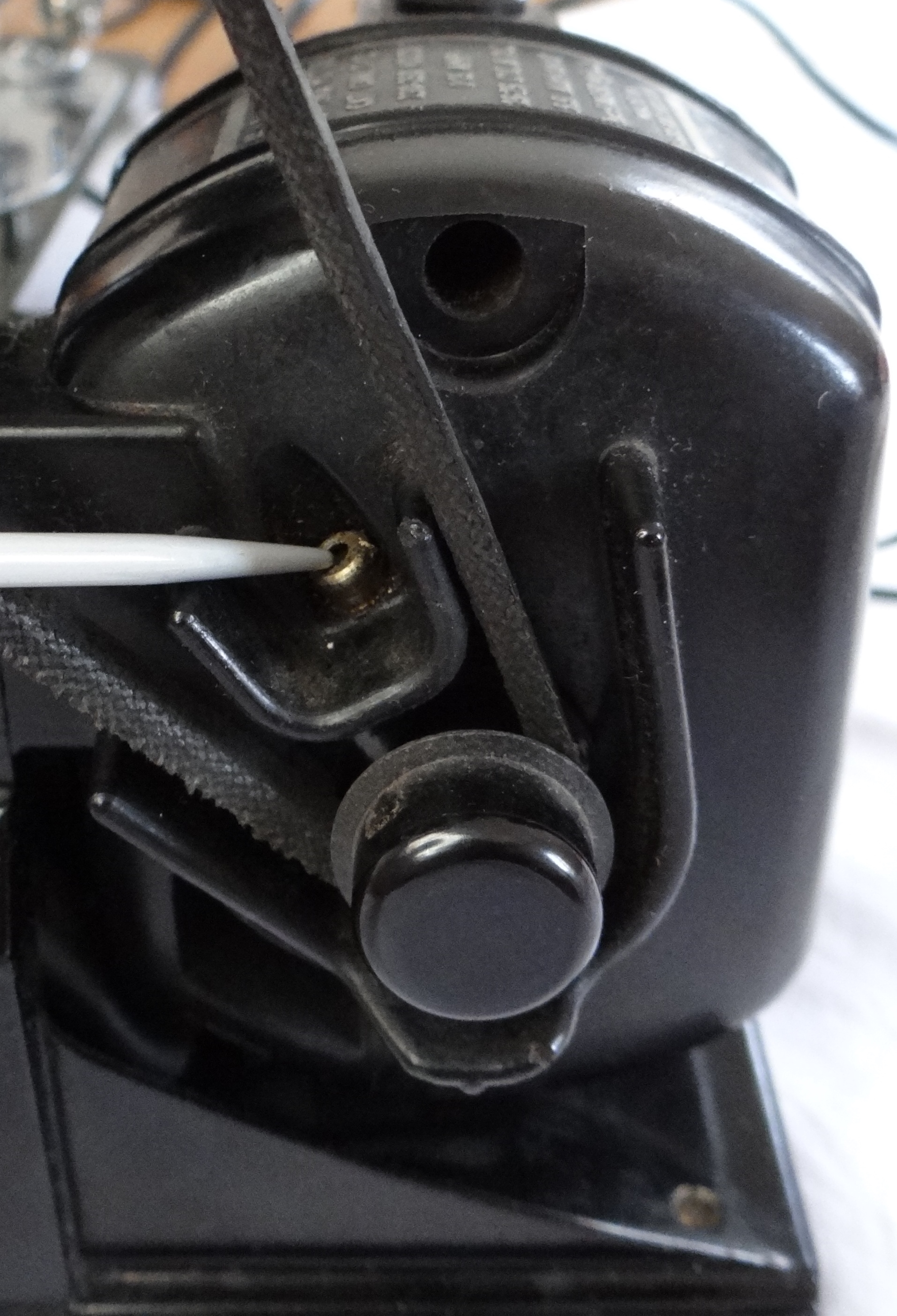 Once the tubular and base plates are back on, its time for the motor (this only needs doing every 6 months).  There are two grease tubes (one on each side of the motor) which you have to force the lubricant into. It’s really important to use the correct Singer lubricant for this as the motor bearings have a wick feed system. If anyone knows where I can buy some “Singer Lubricant for Electric Motors” in the UK please let me know as I’m running out! – thank you.