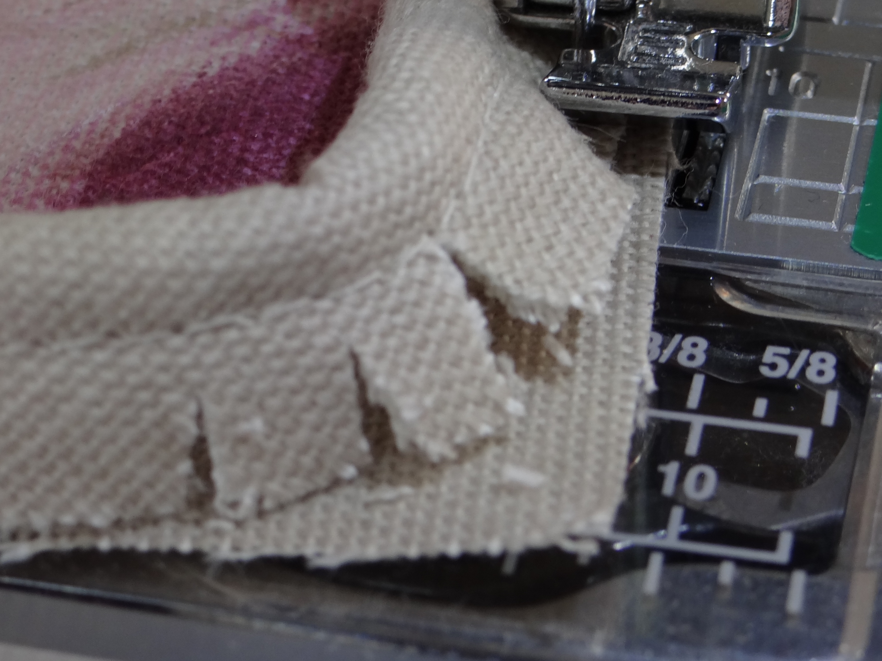 11. Neaten the edge of the cushion cover with a zig zag stitch and / or Pinking shears.