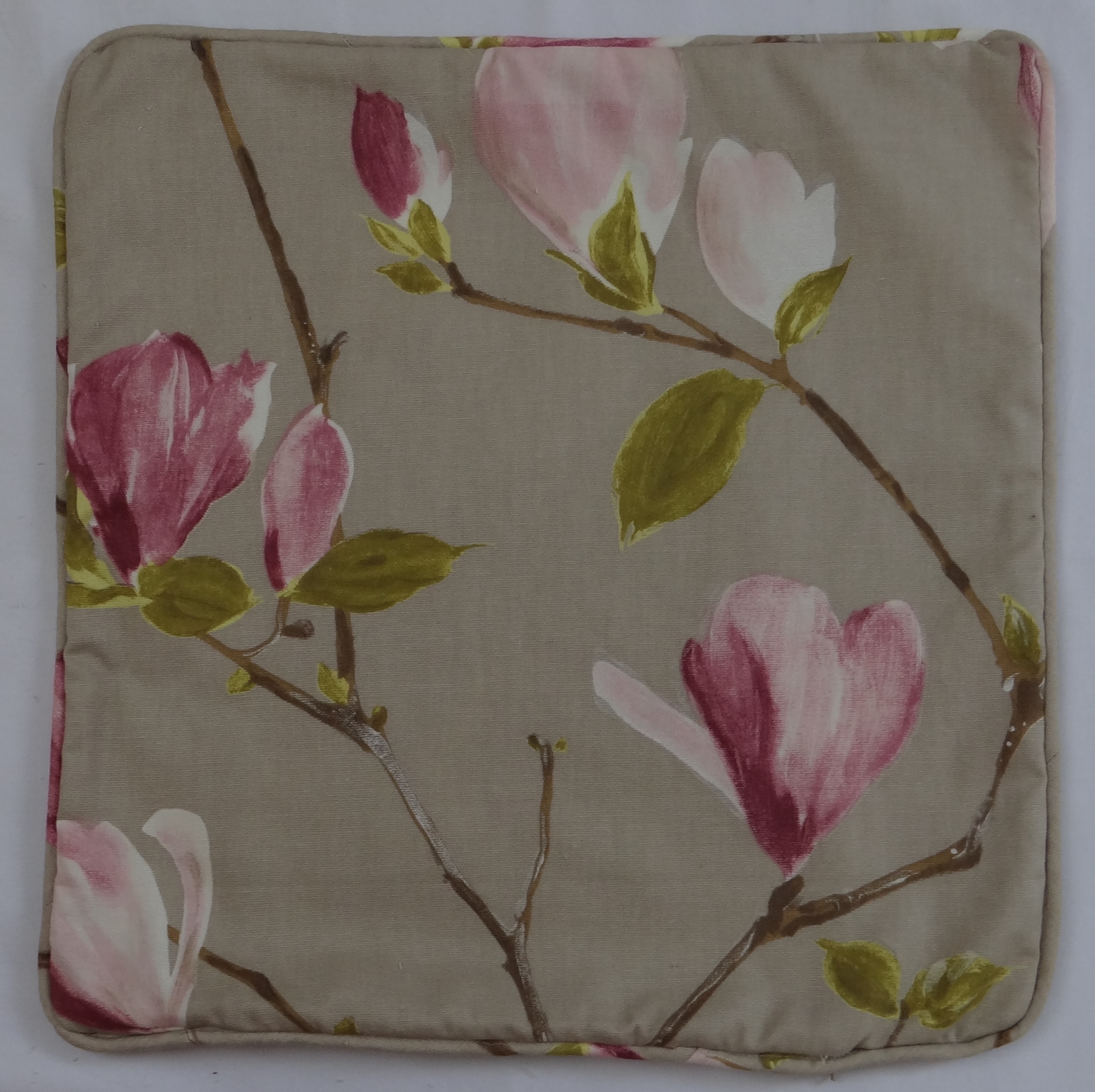 Cushion cover with pad 1. First decide what size you would like the finished cushion cover to be then add on a seam allowance to work out the size of the cushion panel pieces. Cut out two cushion panels of this size from the fabric. I normally make my cushions slightly smaller than the size of the cushion pad so the finished cushion is all lovely and puffy.