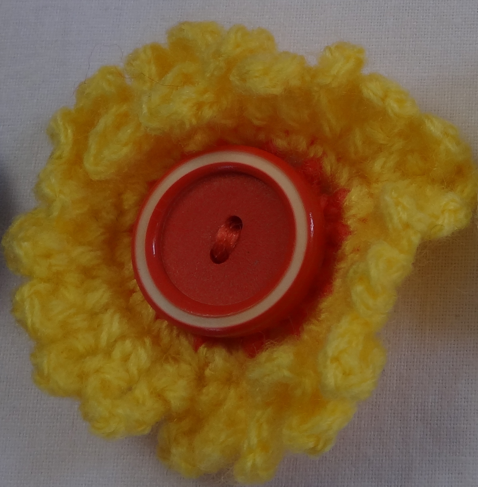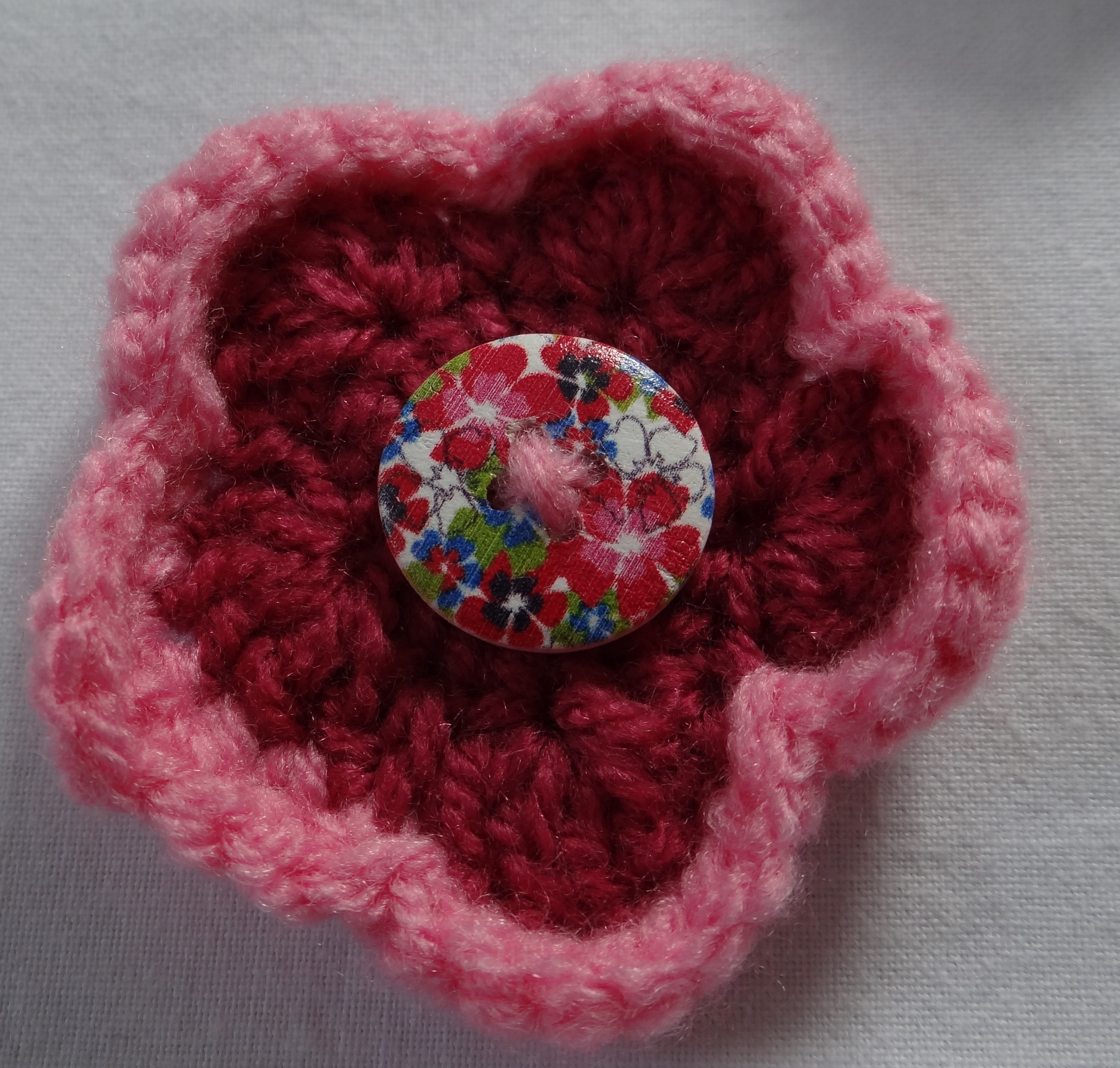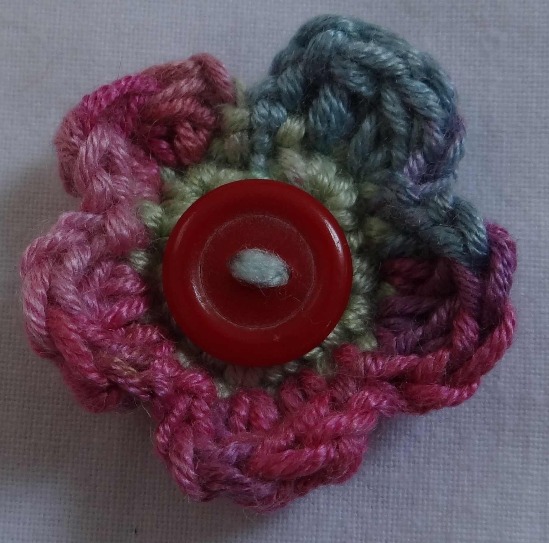 Flowers with plain and variegated yarns, with beautiful buttons and beads.