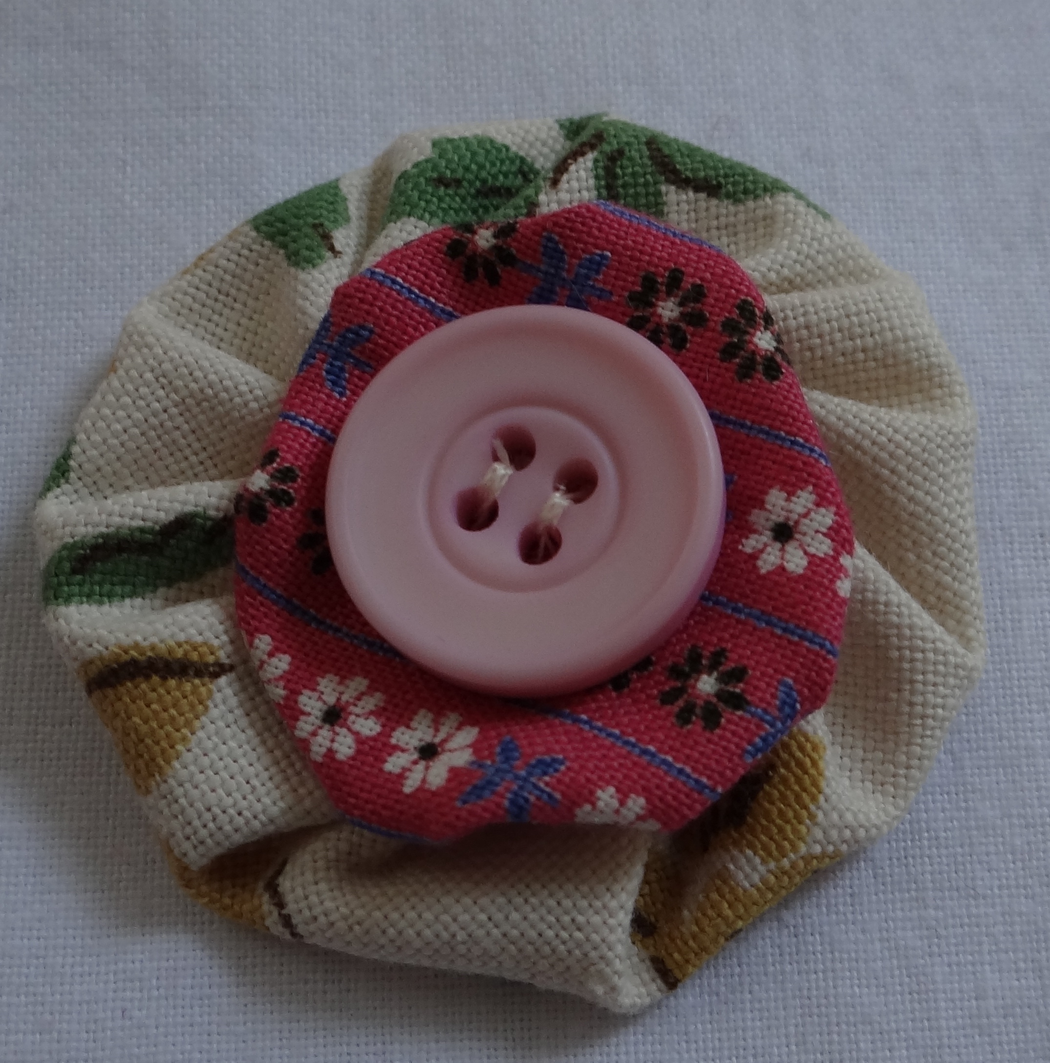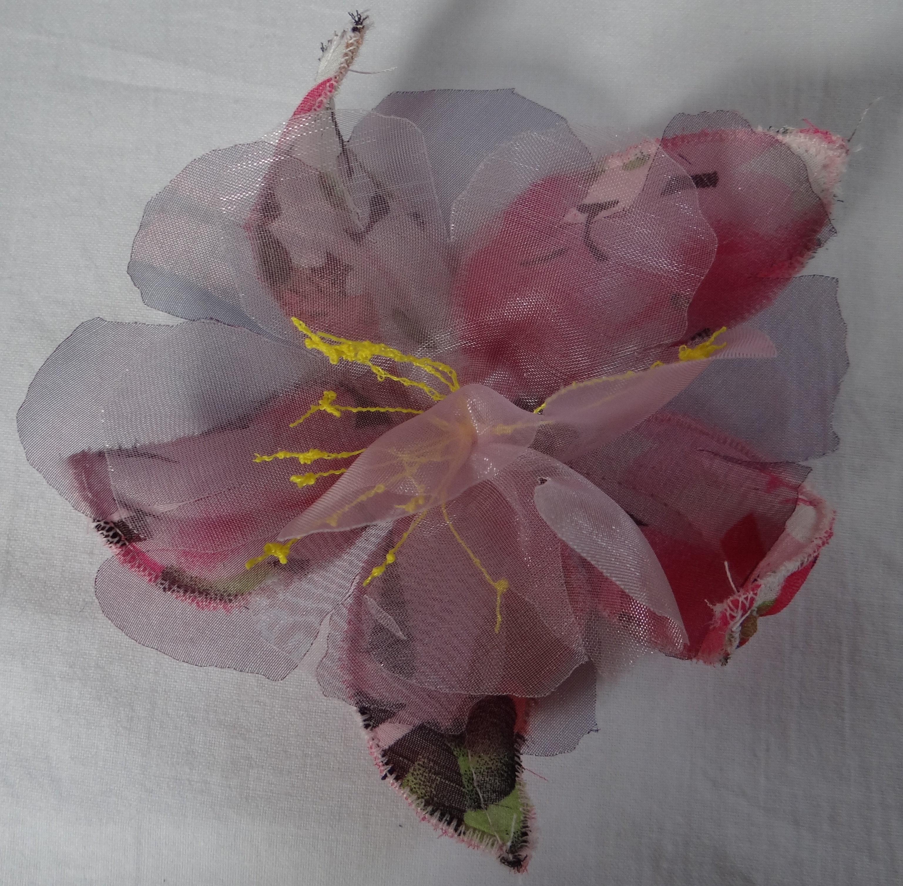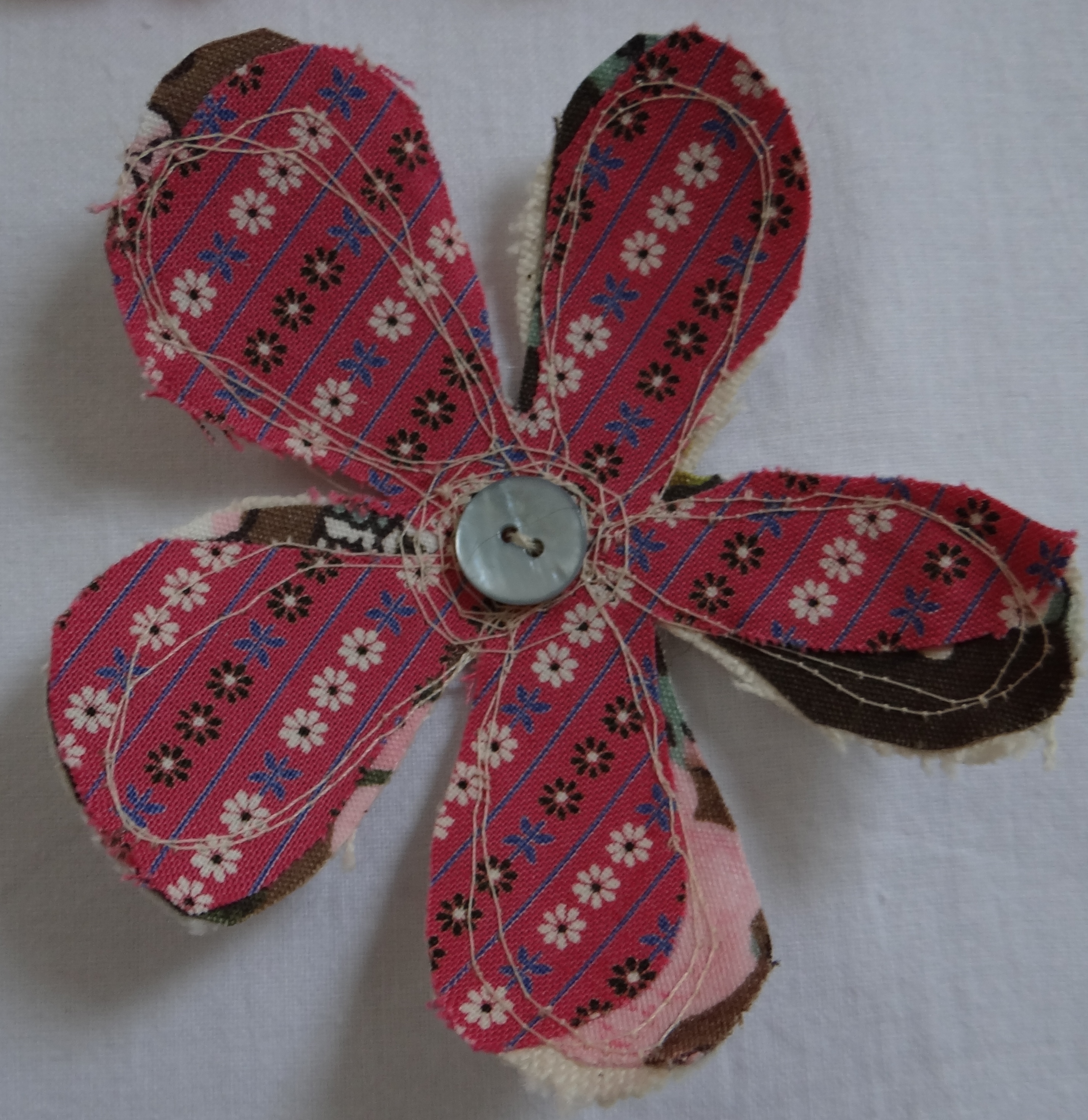 Fabric flowers, some with buttons, free hand embroidery and others with shimmering organza and quilted petals.