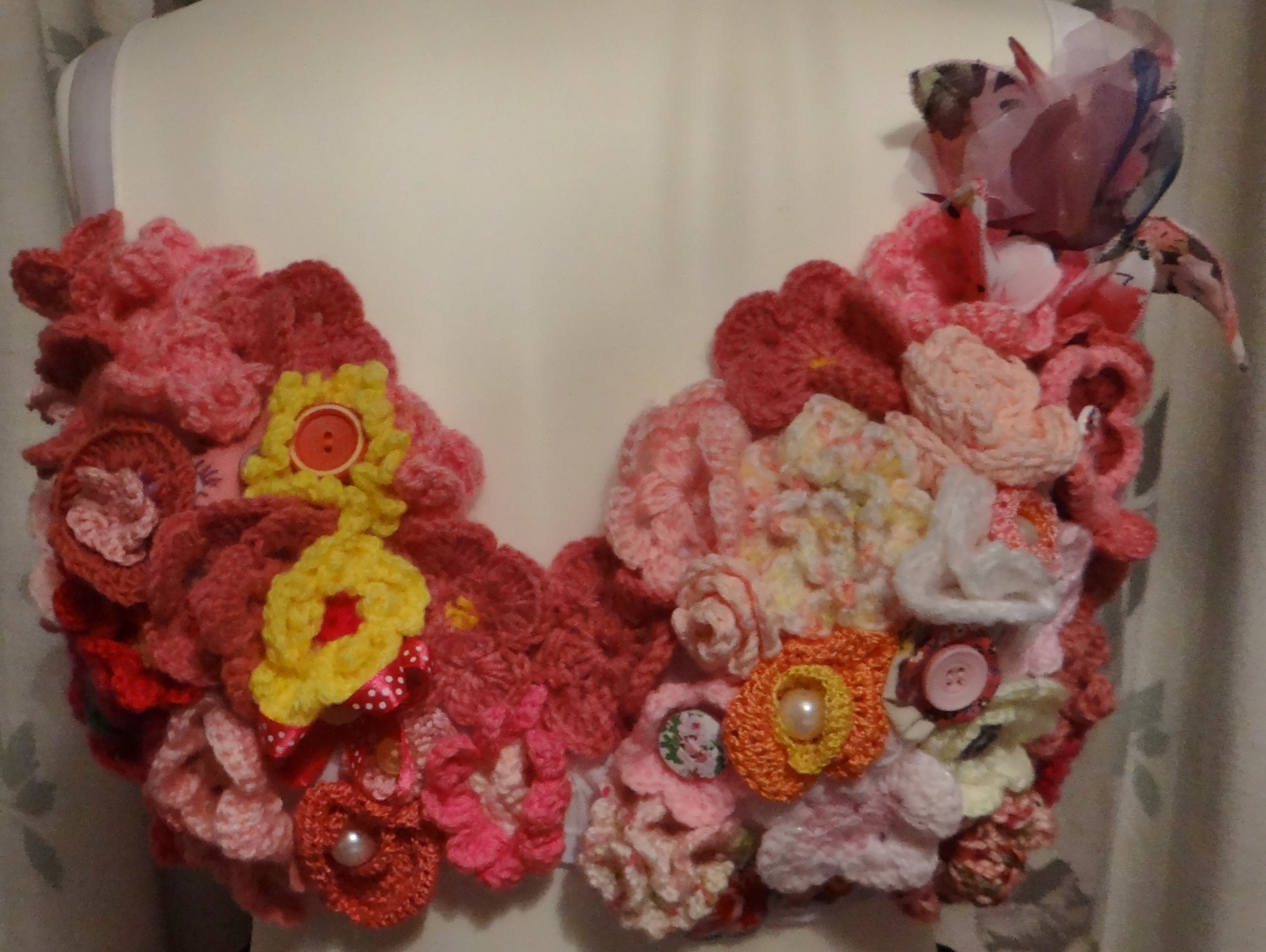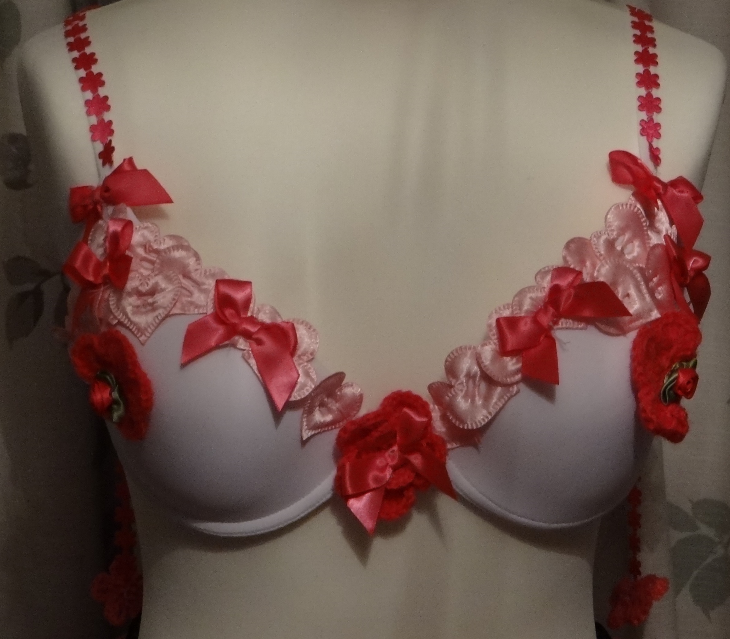 And here they are, MoonWalk London bras with your fabulous flowers carefully hand-stitched into place. Every flower we have been sent will be sewn on (we have a few more to go!)