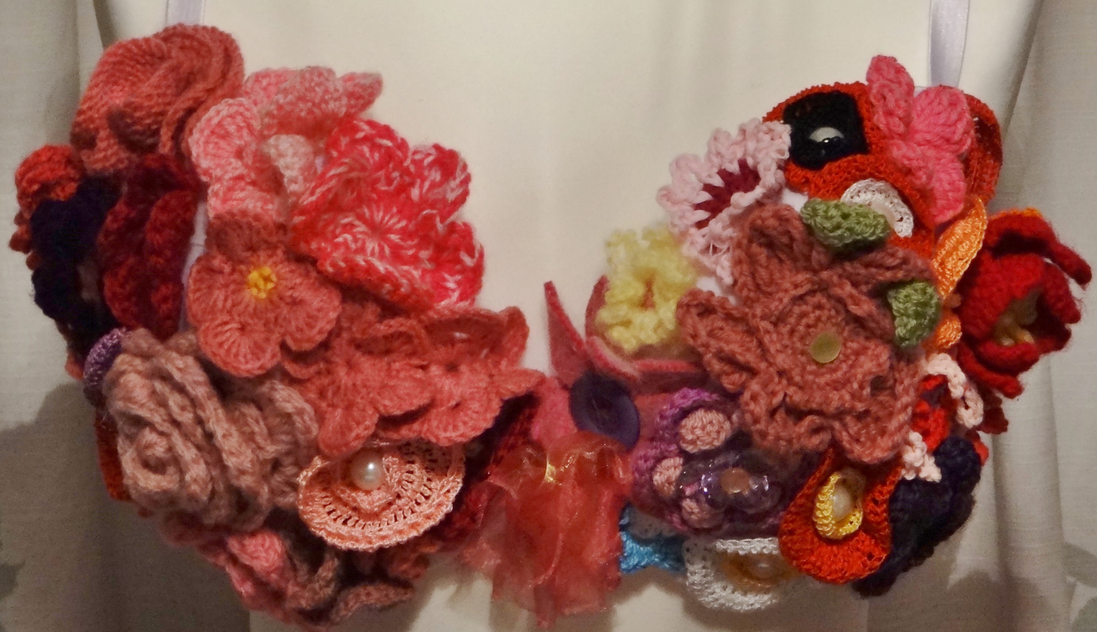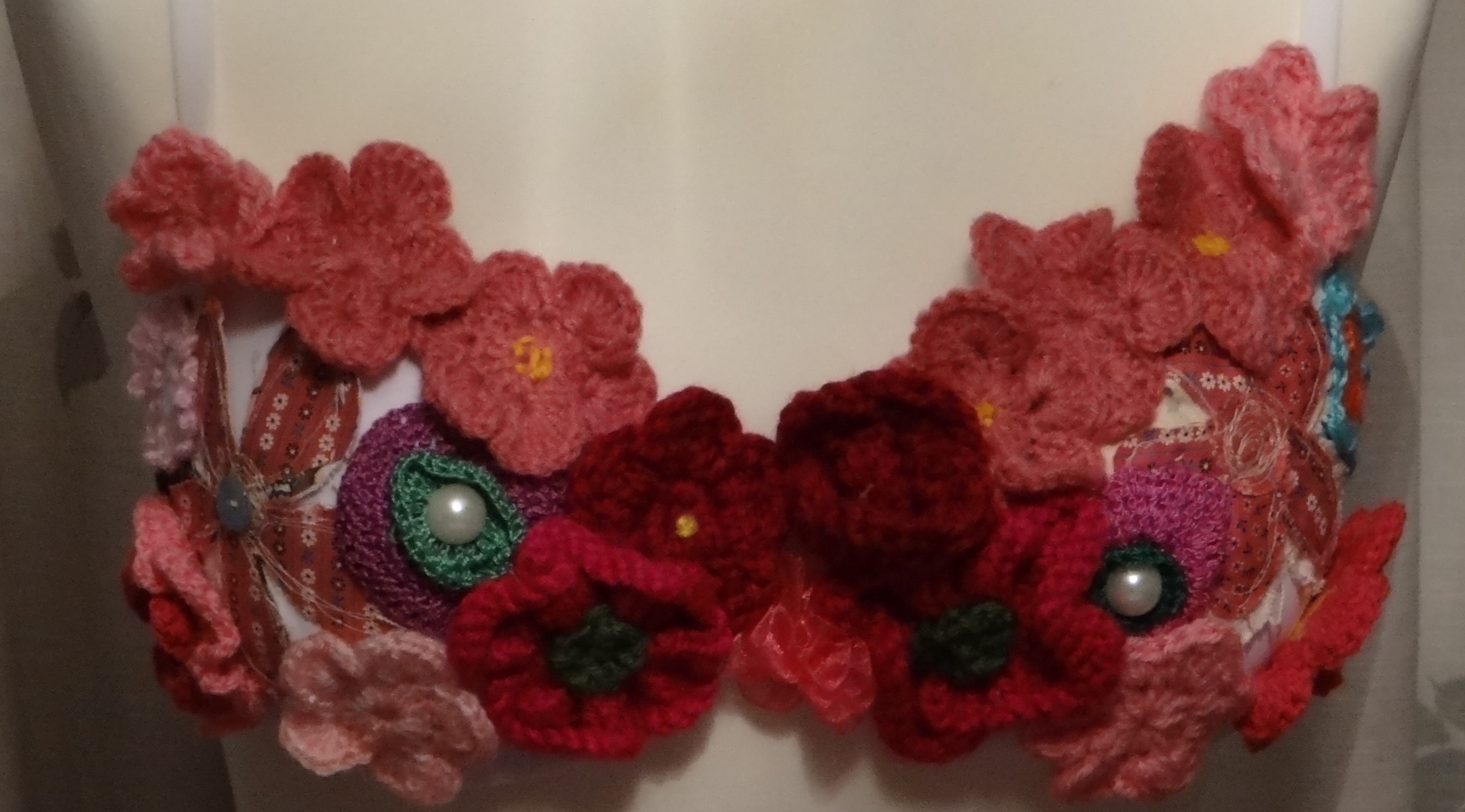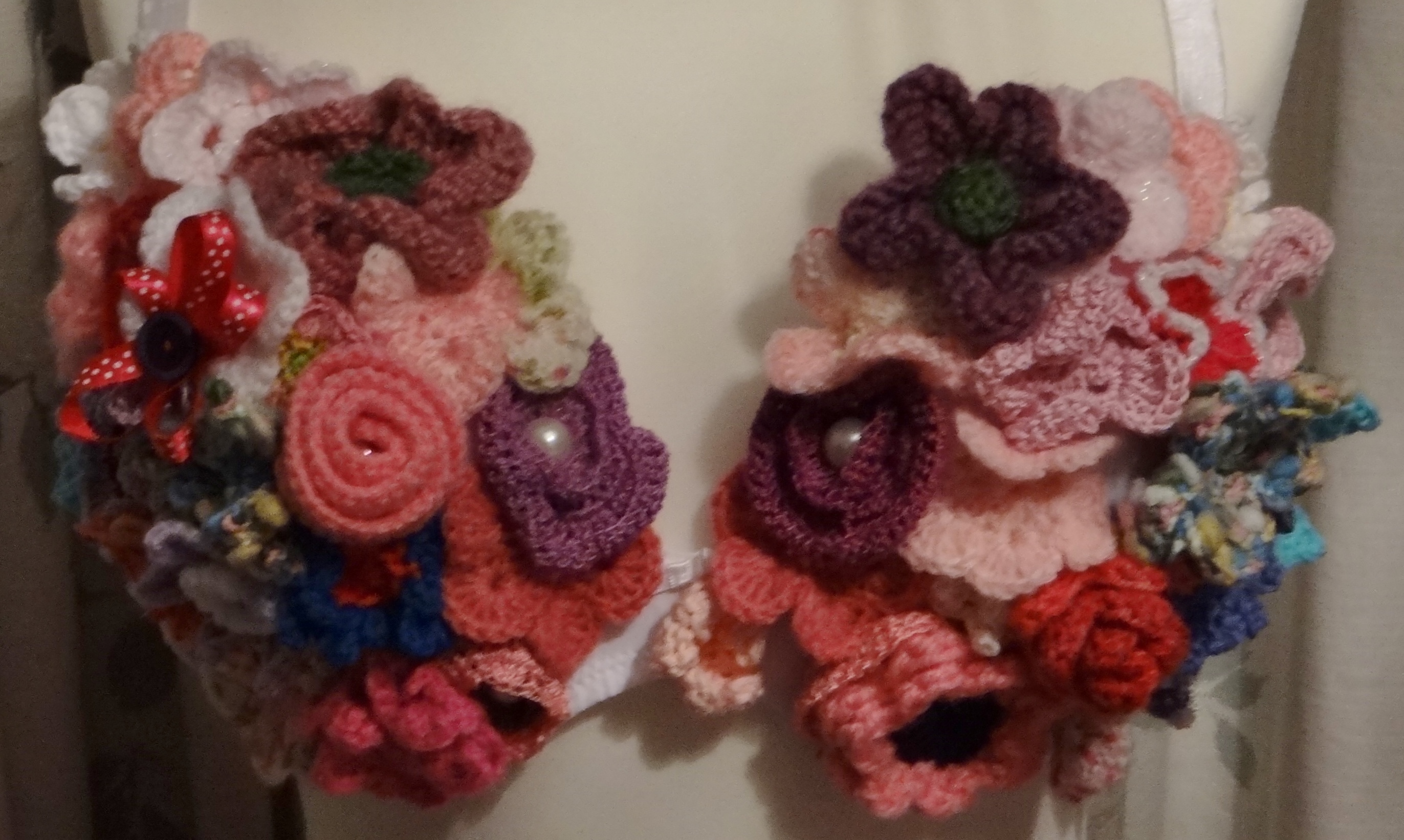 Knitted flowers and felt flowers.